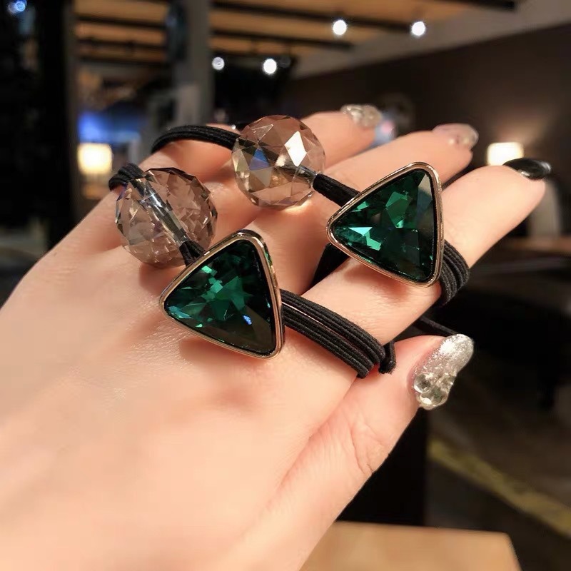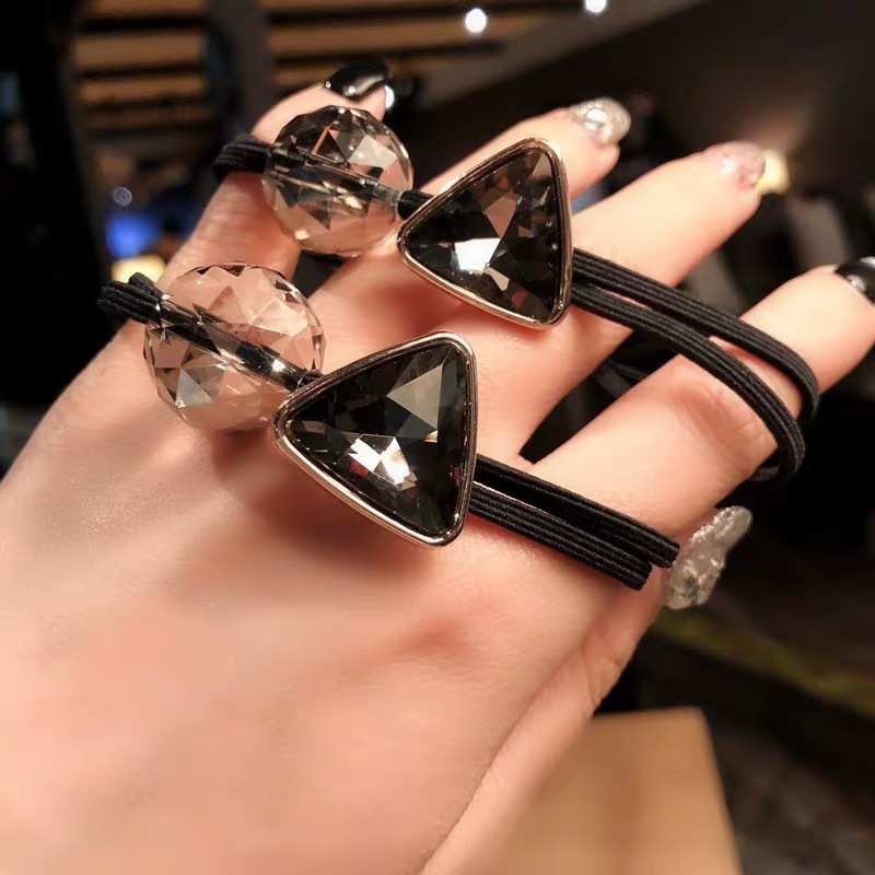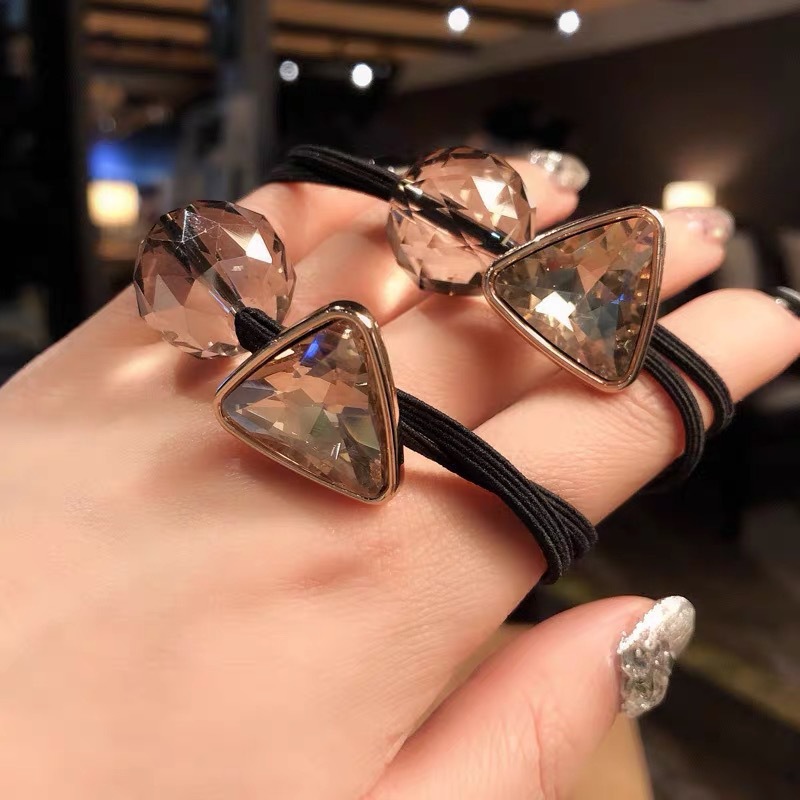 봄 여름 한국 스타일 헤어 링 한국 동대문 인터넷 빨간 머리 로프 크리스탈 다이아몬드 삼각형 다이아몬드 가죽 재킷 여성의 간단한 다채로운 고무스토어 가기