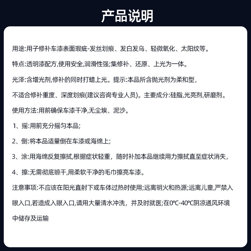 자동차 페인트 스크래치 왁스 자동차 페인트 마크 수리 유물 유리 오일 필름 에멀션 페인트 깊이 스크래치 보물 연마