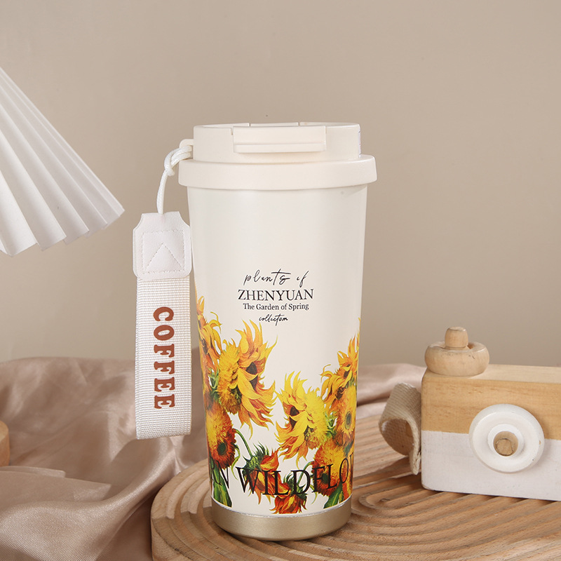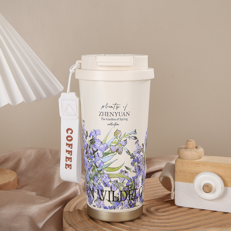 릴리 오브 더 밸리 커피 컵 높은 컬러 값 더블 마시는 밀짚 컵 대용량 차 보온병 컵 선물 동반 커피 컵스토어 가기