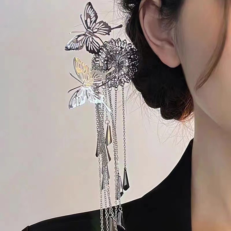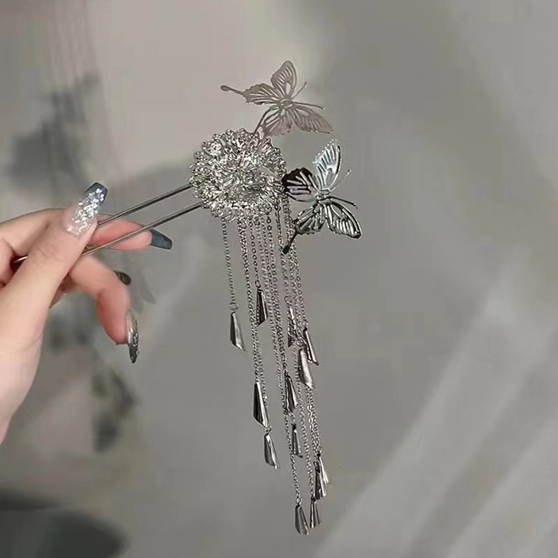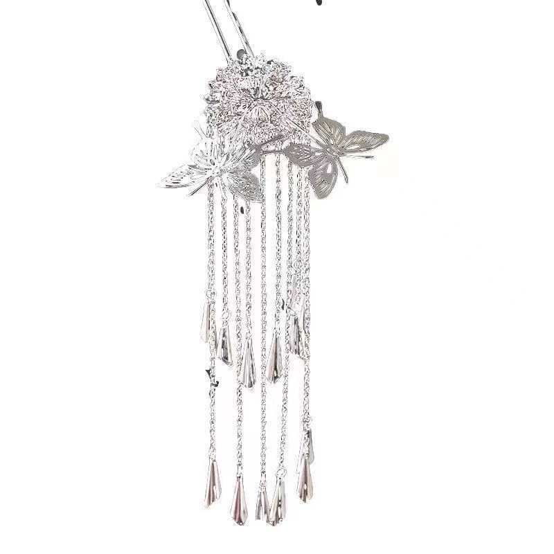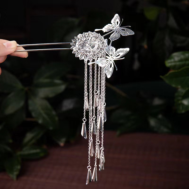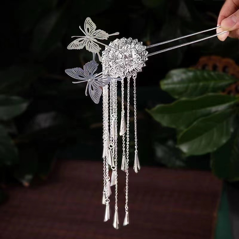 레트로 스타일 미아오 스타일 나비 술 헤어핀 단계 실버 헤어 액세서리 간단한 고대 장식 한후 액세서리 궁전 머리핀 여성
