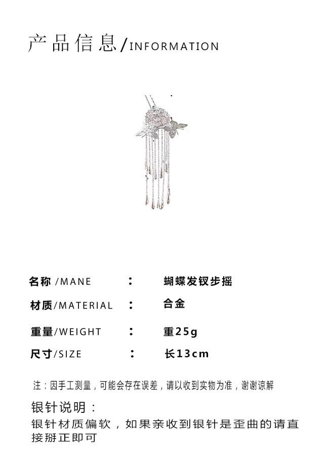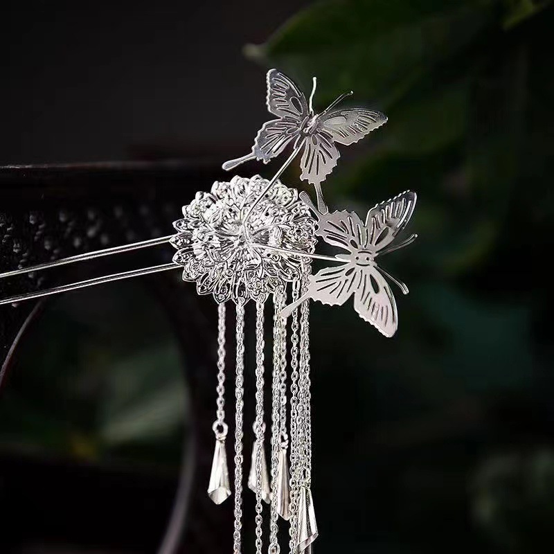 레트로 스타일 미아오 스타일 나비 술 헤어핀 단계 실버 헤어 액세서리 간단한 고대 장식 한후 액세서리 궁전 머리핀 여성스토어 가기