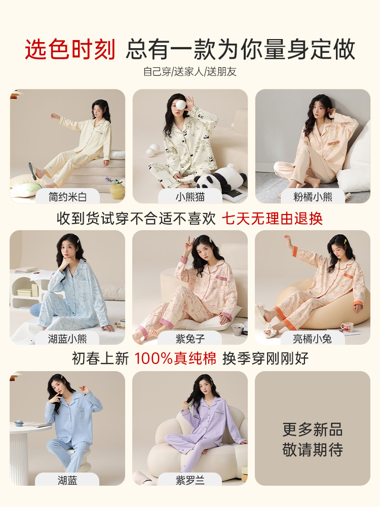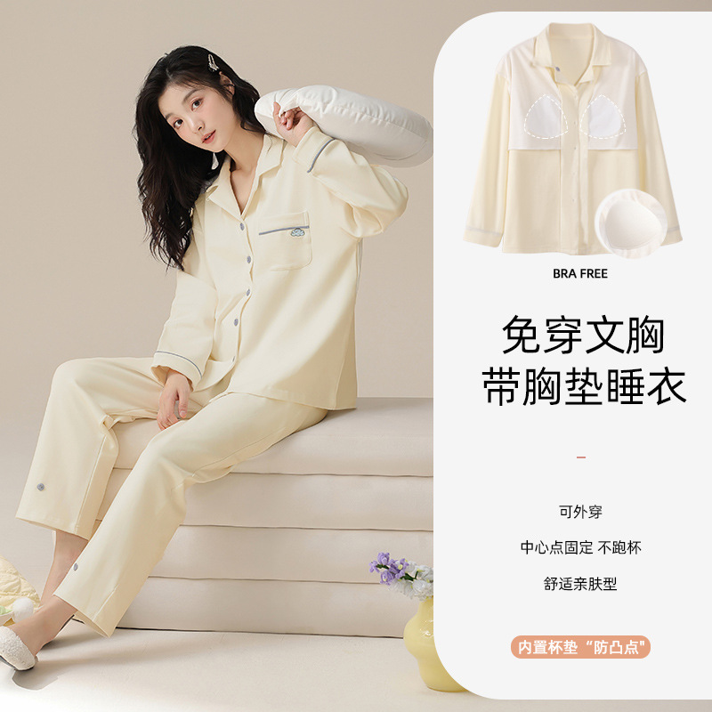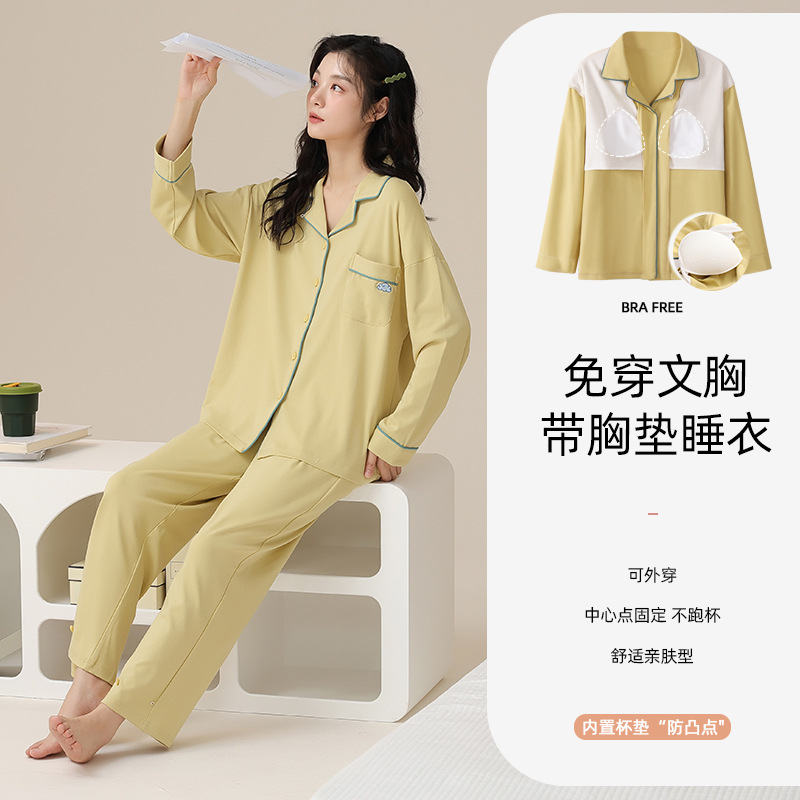 엄선된 파데이치 잠옷 2026 신상 봄가을 순면 여름 홈웨어 세트 여성용 가슴 패드 포함스토어 가기