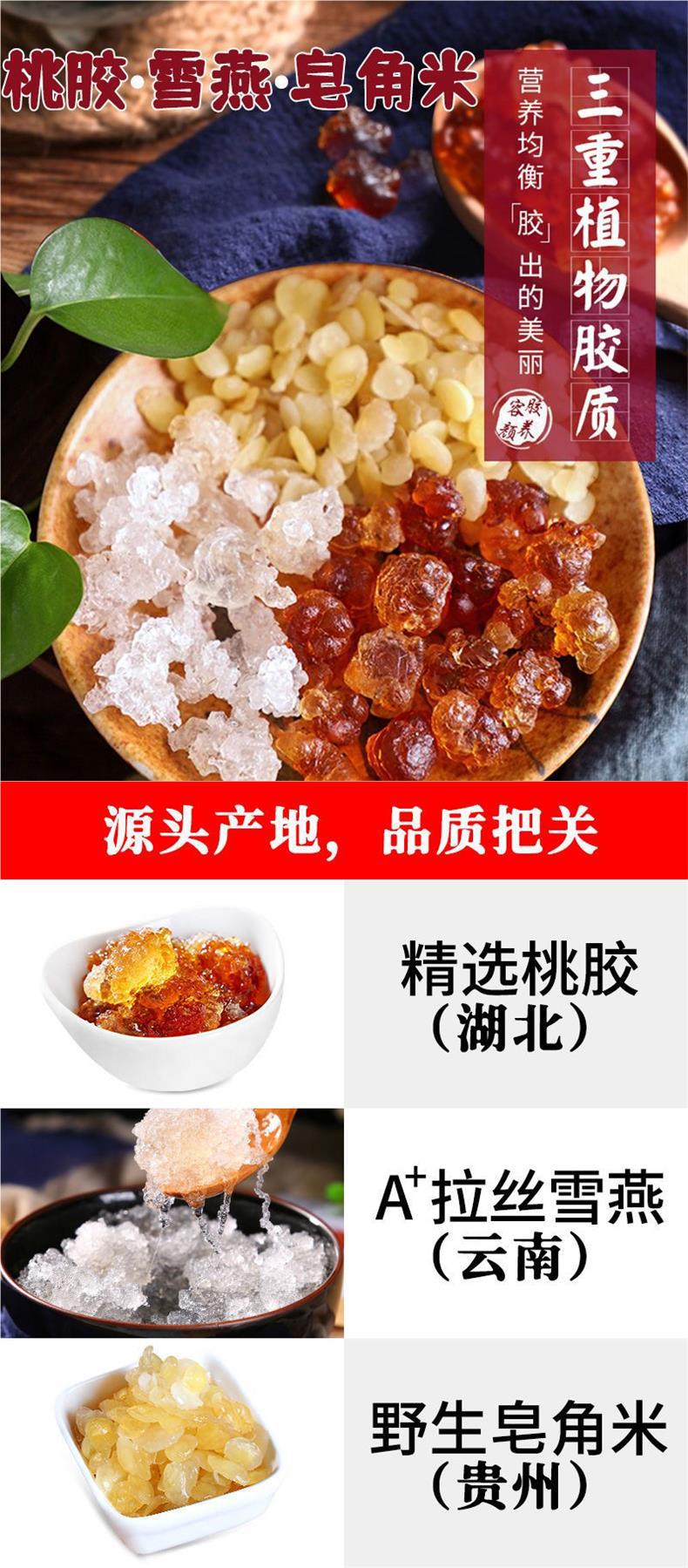 甄选桃胶雪燕皂角米胶颜组合装搭配云南天然野生桃花泪雪莲子独立