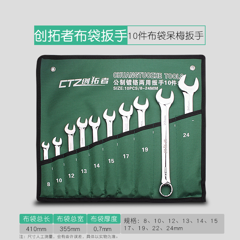 Chuangtuo 이중 목적 렌치 세트 12 피스 세트 8-24MM 수동 오픈 엔드 링 렌치 하드웨어 도구 세트스토어 가기