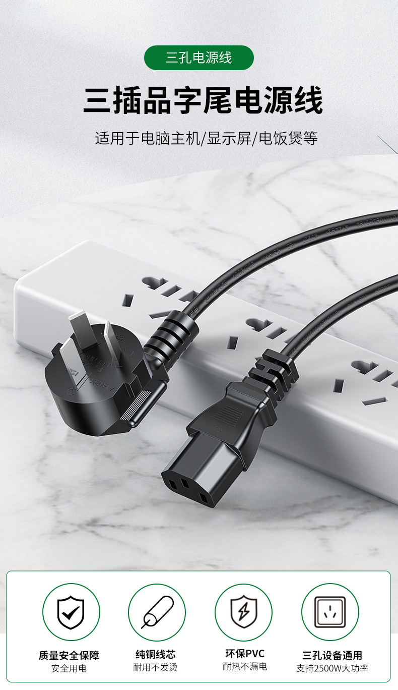 Jinghua 컴퓨터 호스트 전원 코드 3 홀 컴퓨터 모니터 밥솥 전기 주전자 프린터 워드 전원 코드스토어 가기