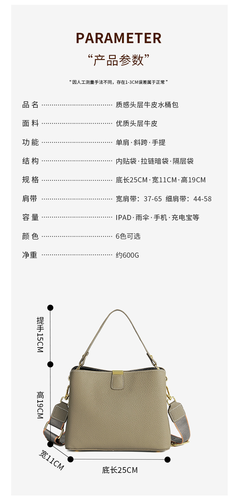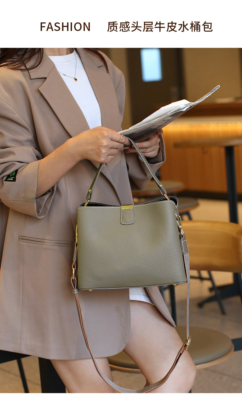 包包斜挎包女2025新款头层牛皮水桶包百搭通勤真皮大容量手提包女