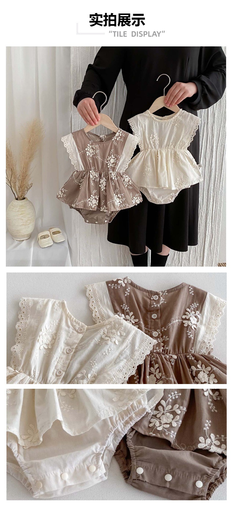 Ins 한국식 아기 민소매 가방 방귀 여성 아기 서양식 수 놓은 하 스타일 스커트 여름 얇은 등반 옷 외출스토어 가기