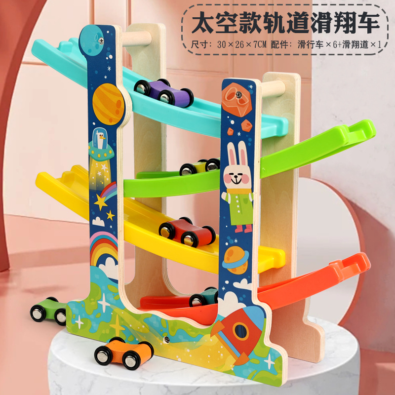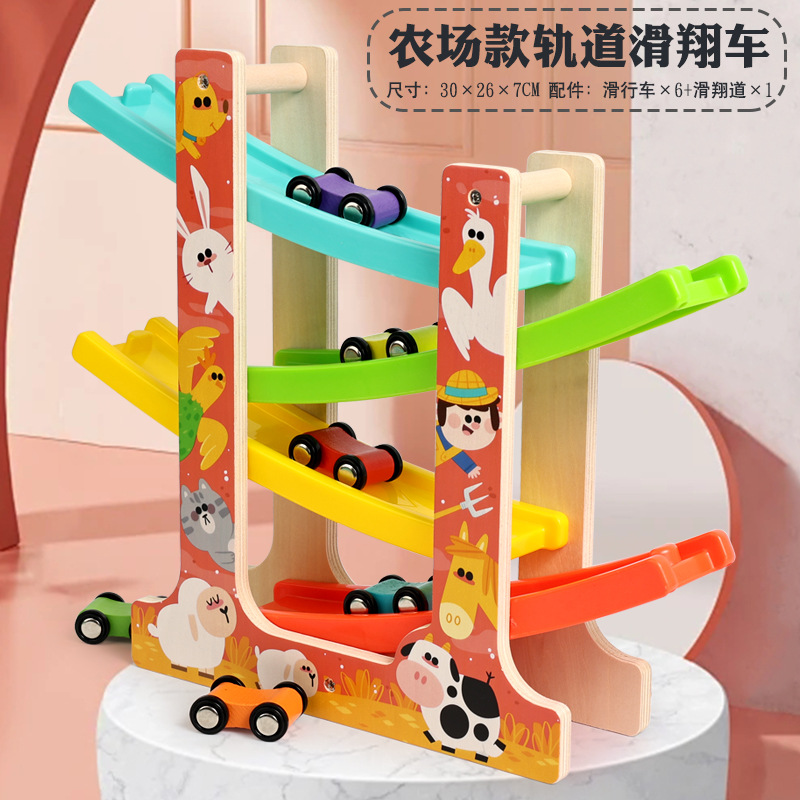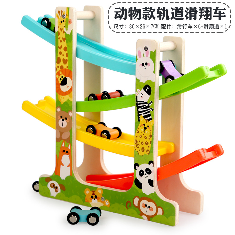 국경 간 교육 장난감 어린이 나무 다기능 동물 글라이딩 트랙 자동차 아기 조기 교육 관성 슬라이드 자동차
