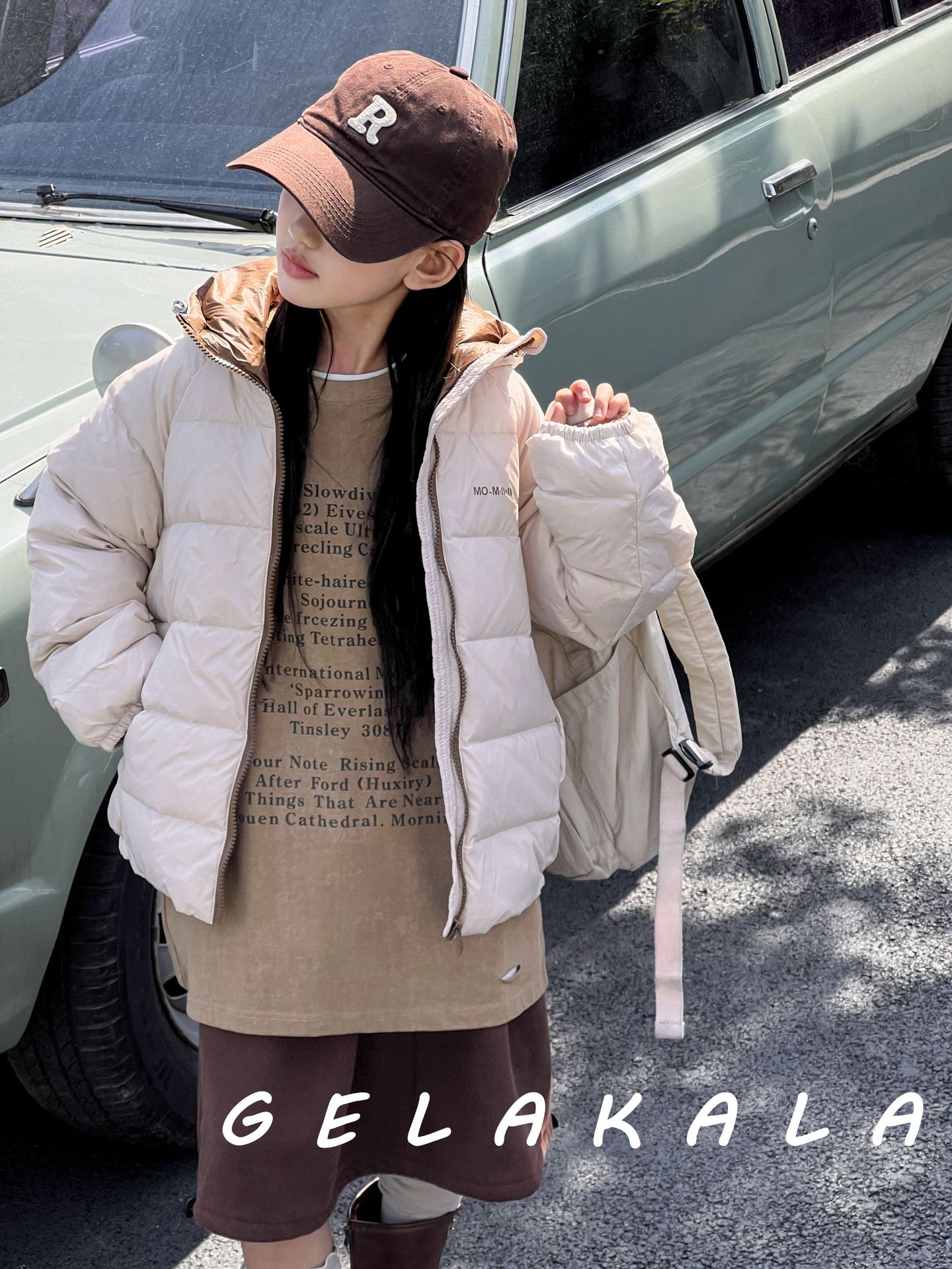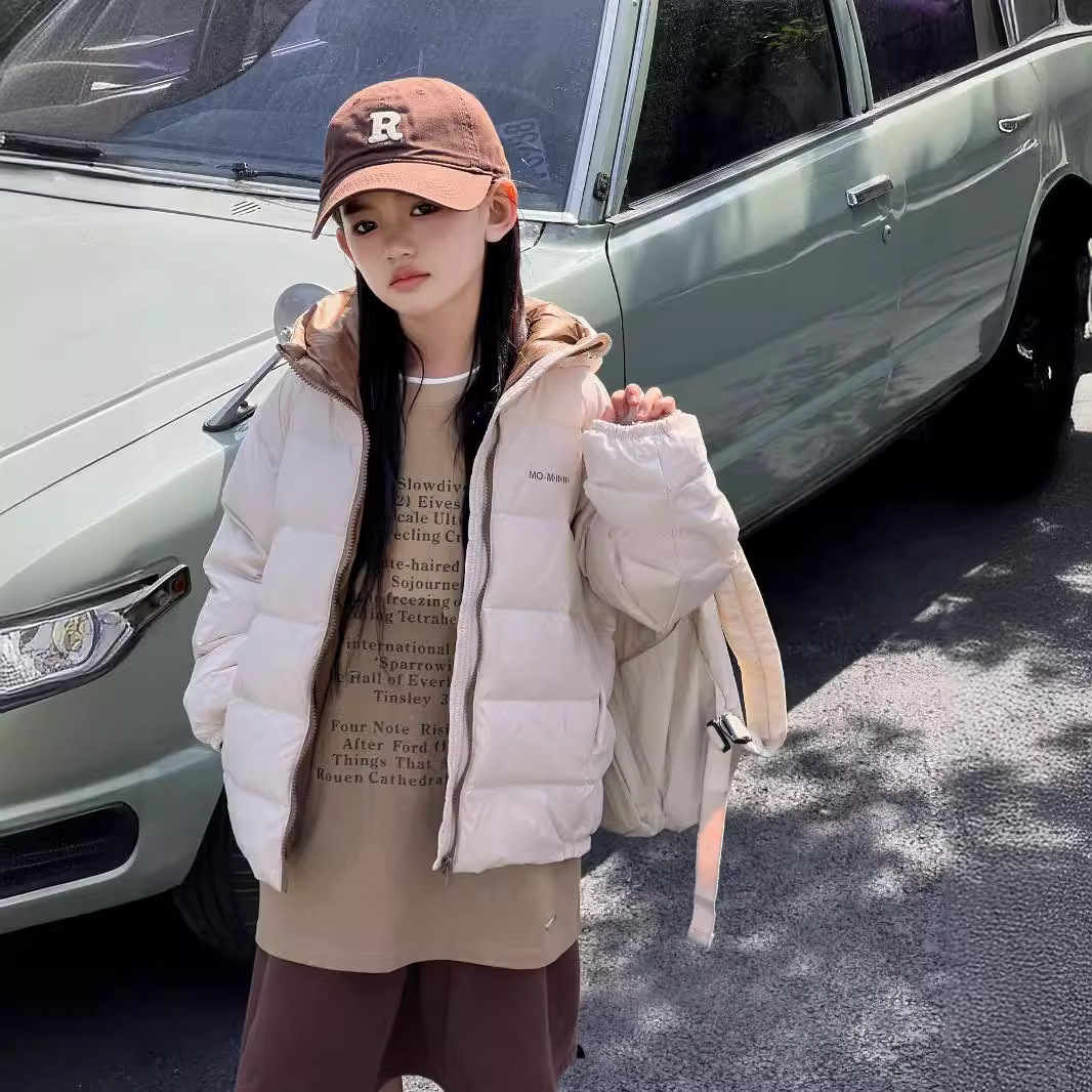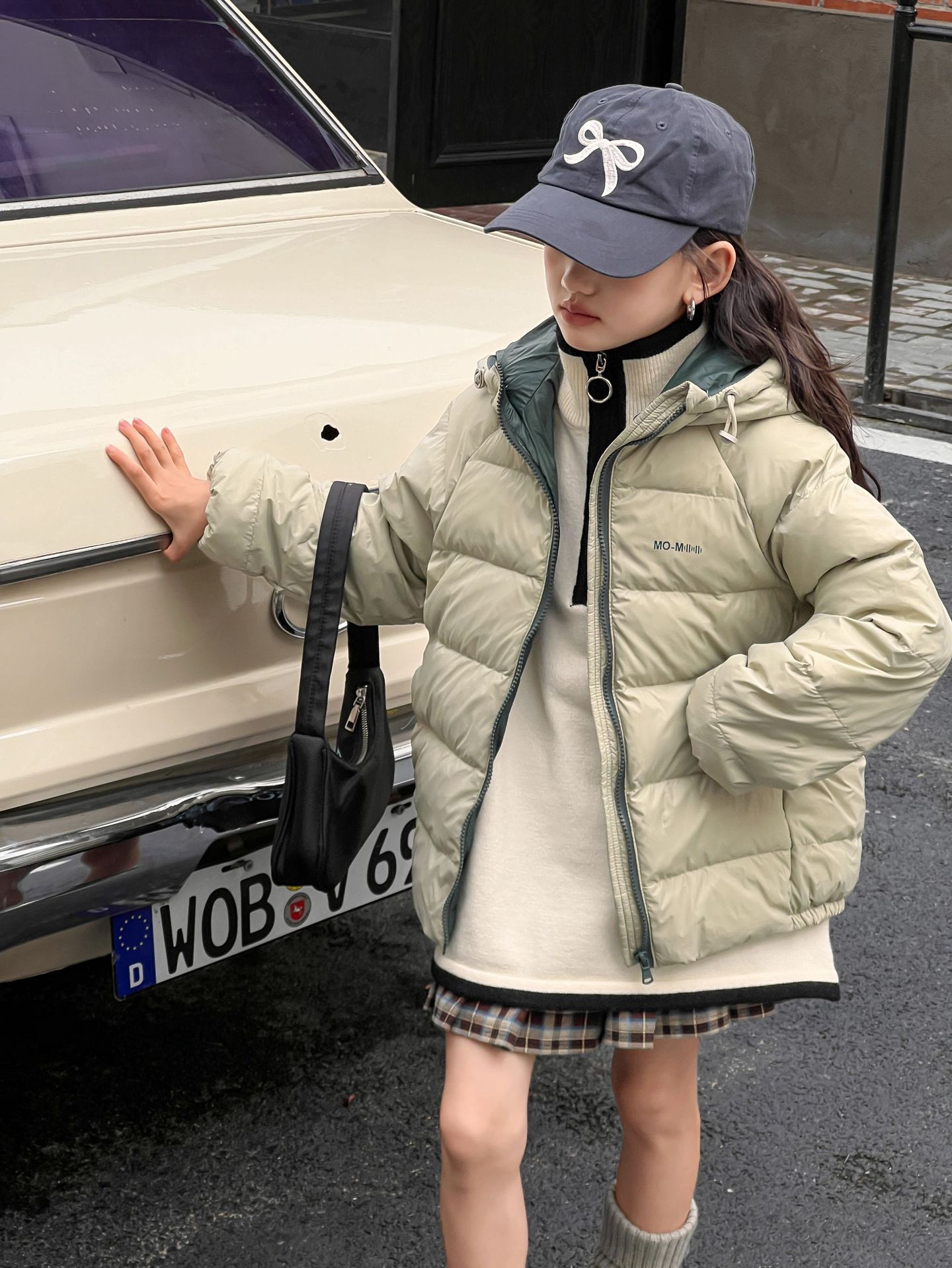 겨울 아동복, 여아 다운 재킷, 남아 배색 후드 탑, 한국 스타일 아동용 짧은 방풍 다운 재킷