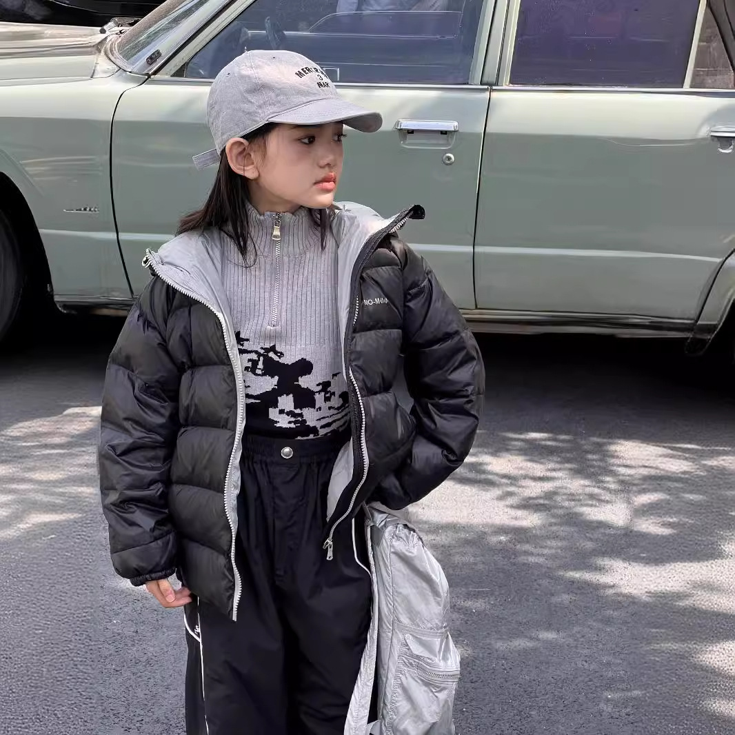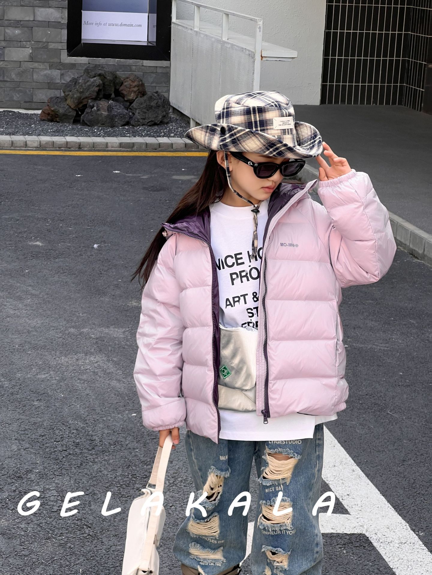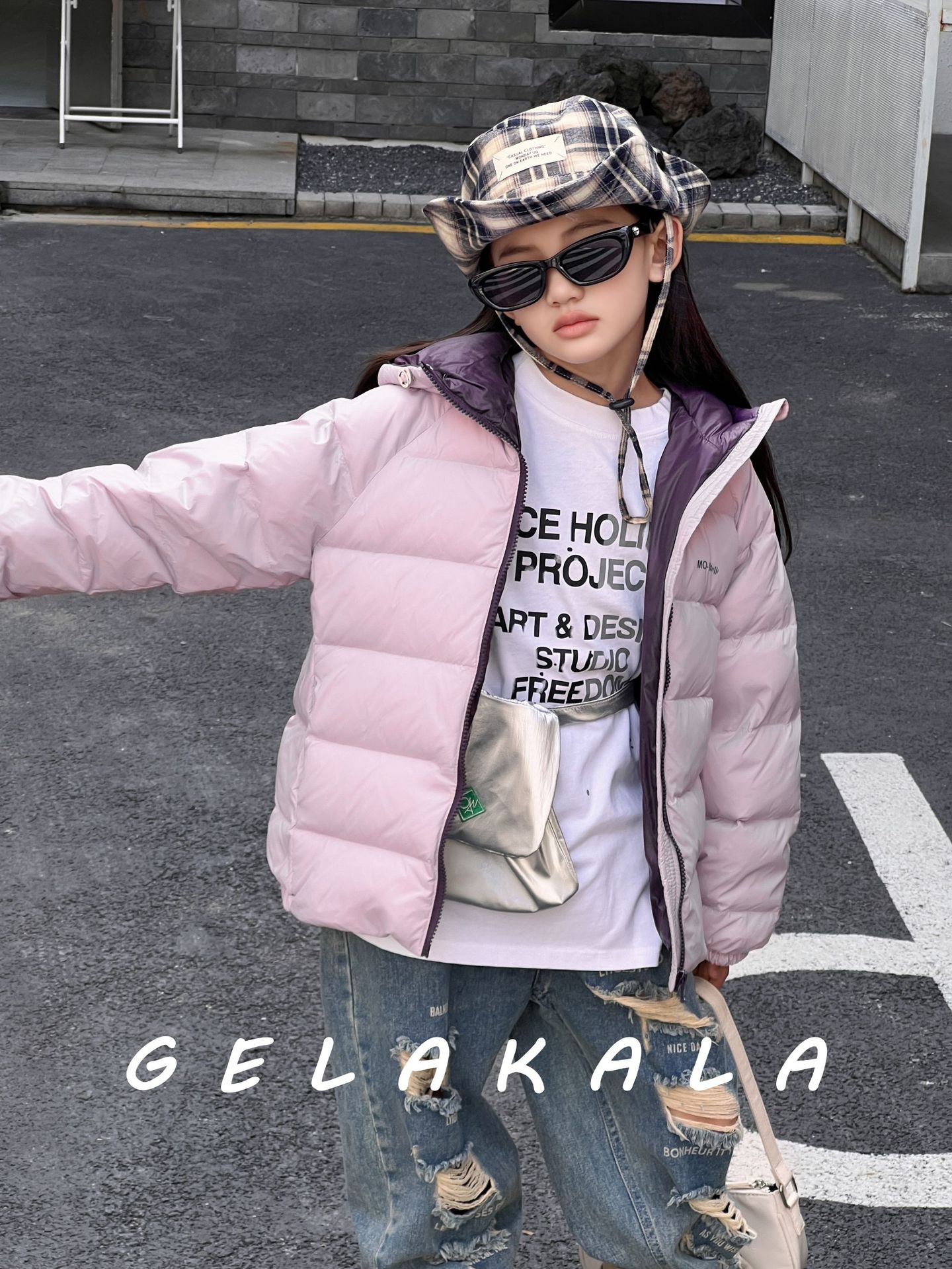겨울 아동복, 여아 다운 재킷, 남아 배색 후드 탑, 한국 스타일 아동용 짧은 방풍 다운 재킷