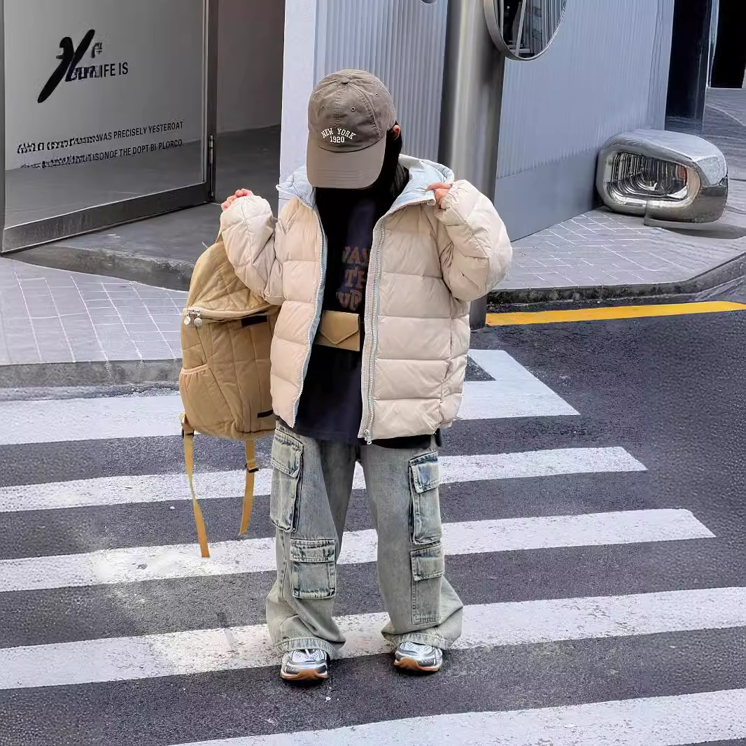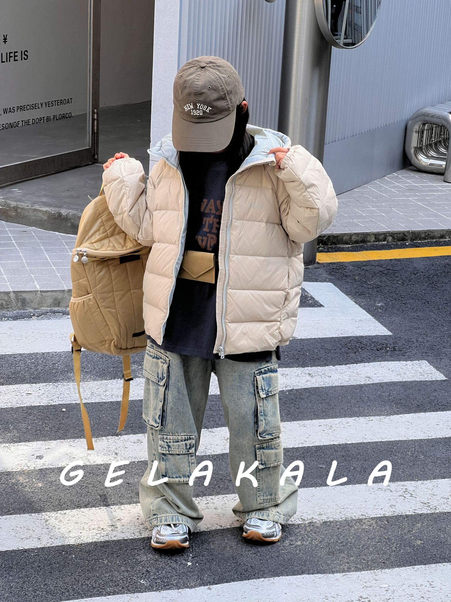겨울 아동복, 여아 다운 재킷, 남아 배색 후드 탑, 한국 스타일 아동용 짧은 방풍 다운 재킷스토어 가기