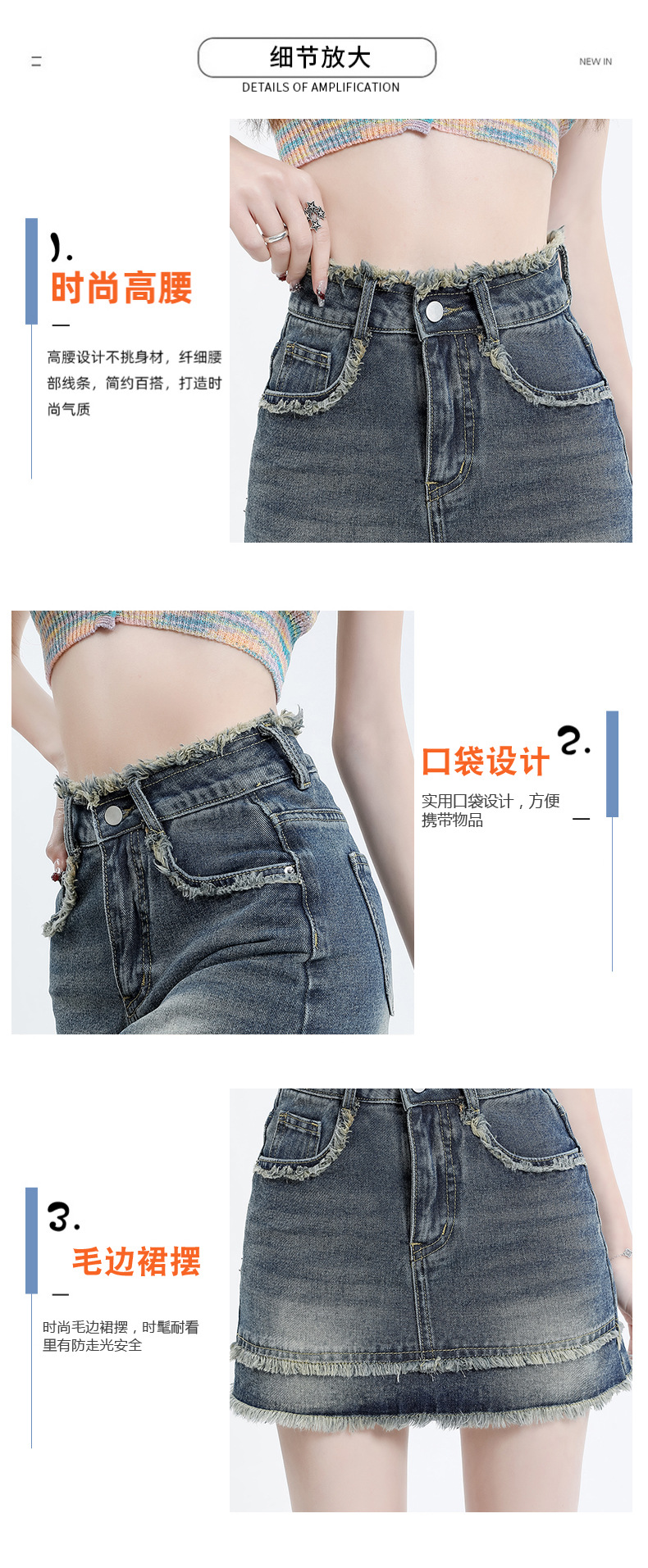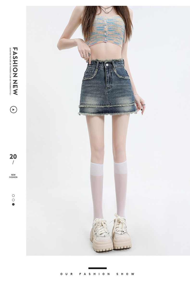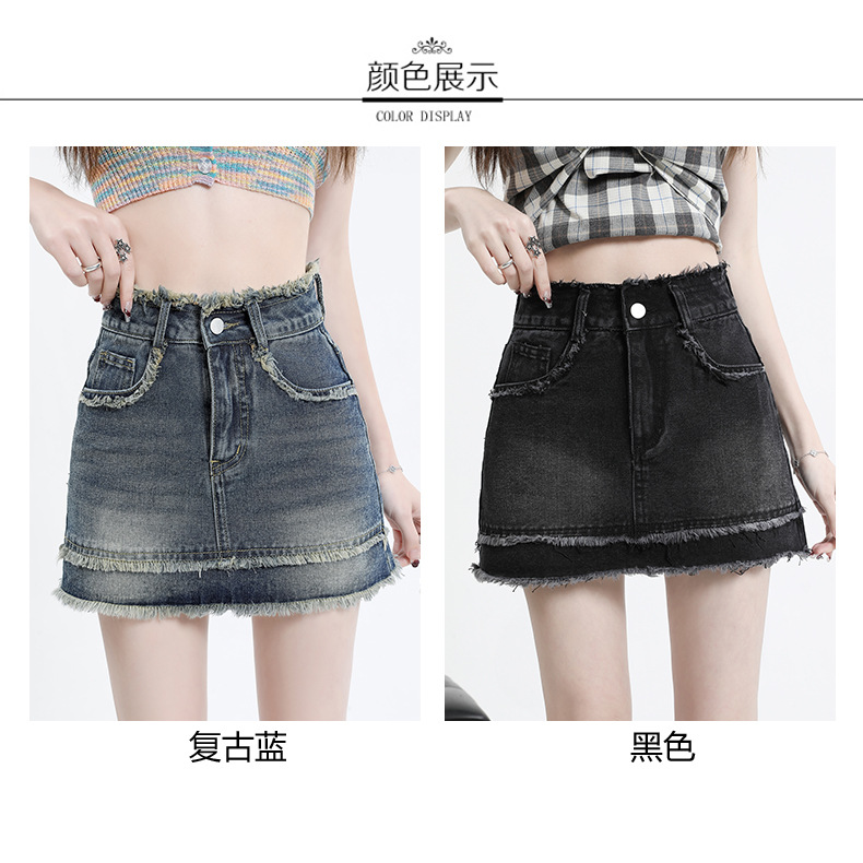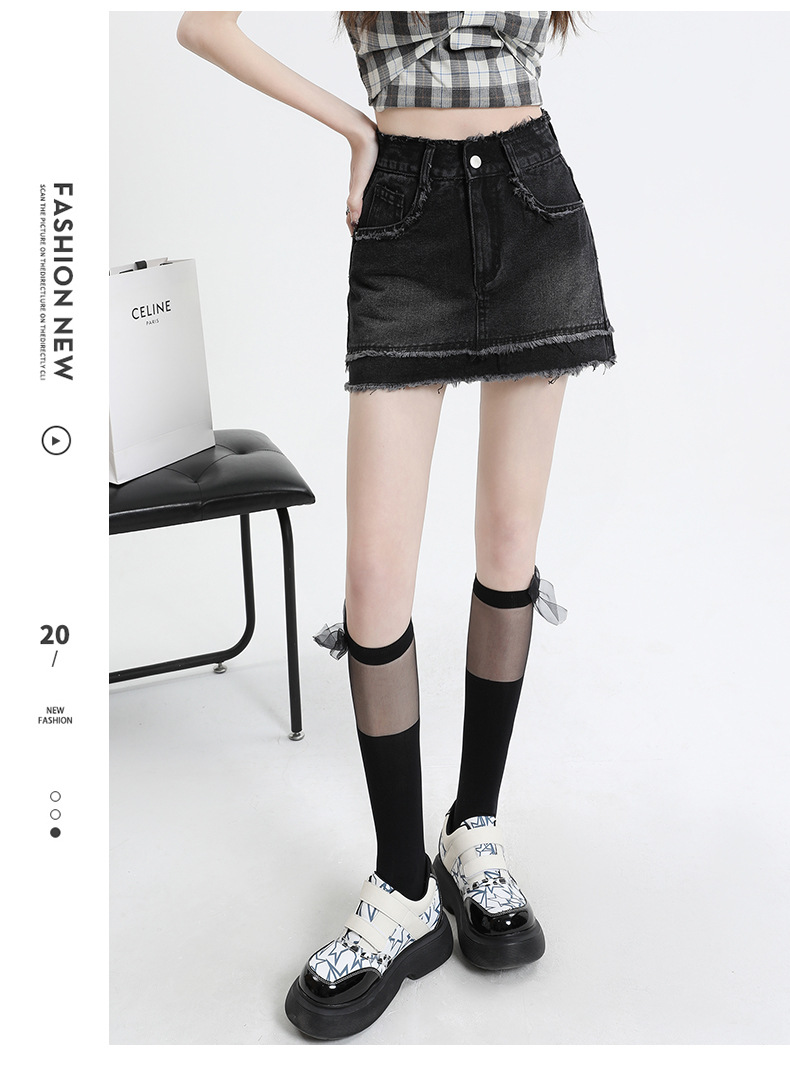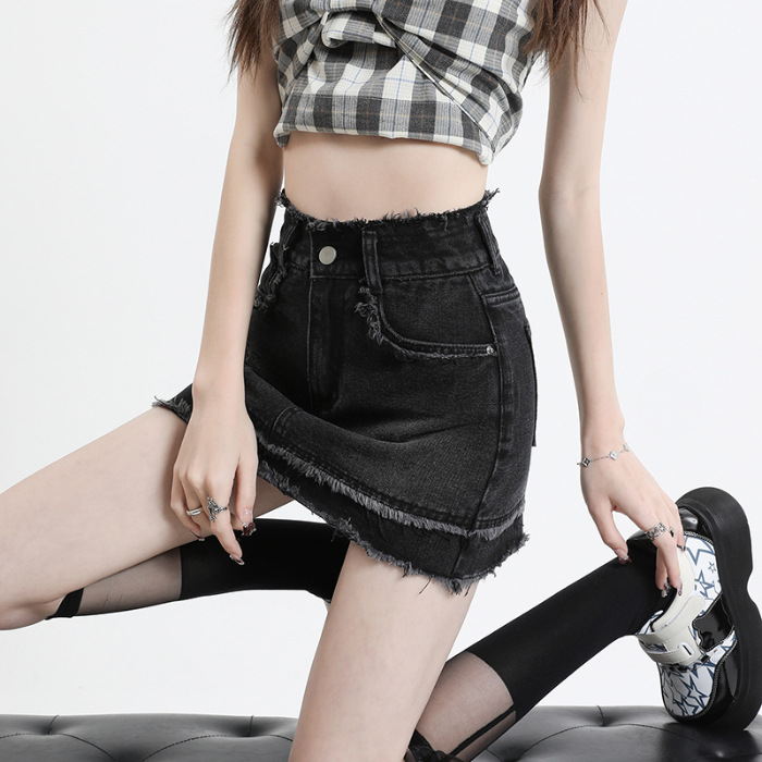 검은 스파이스 소녀 데님 짧은 바지 스커트 A 자형 미끄럼 방지 힙합 스커트 여름 디자인 틈새 높은 허리 슬리밍스토어 가기