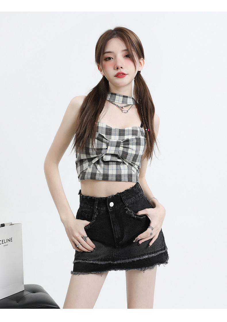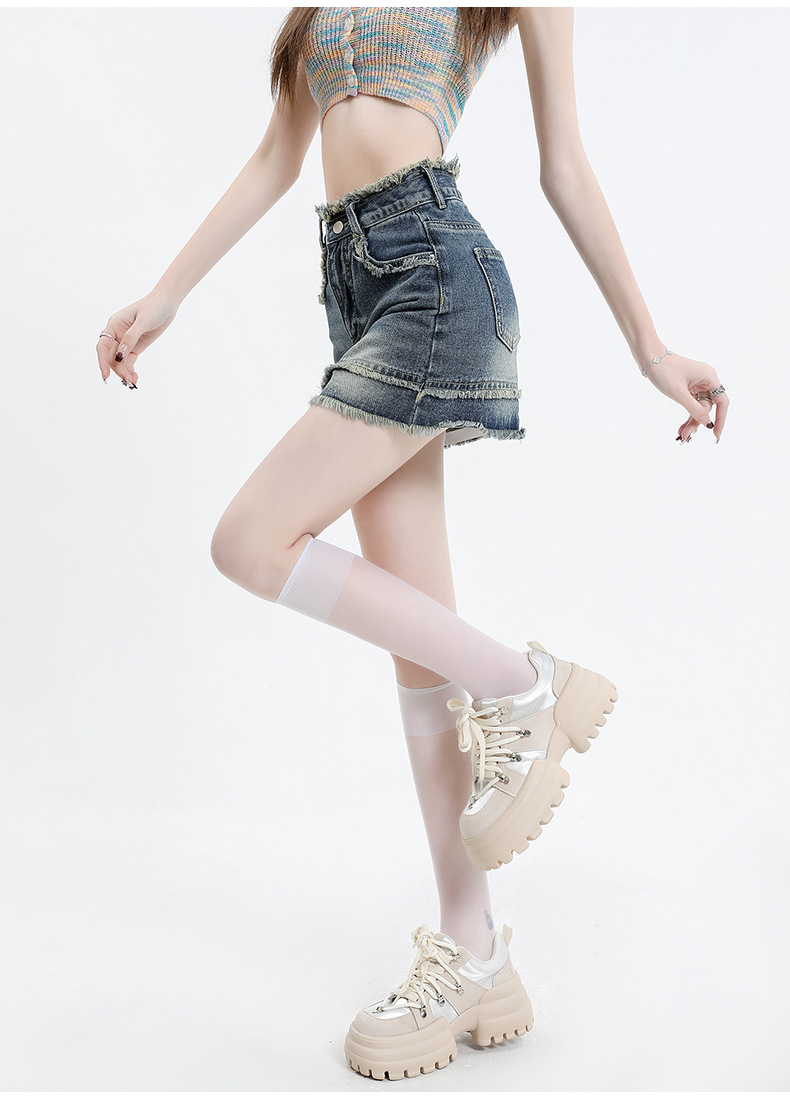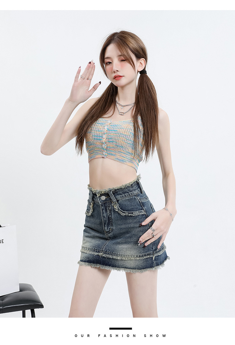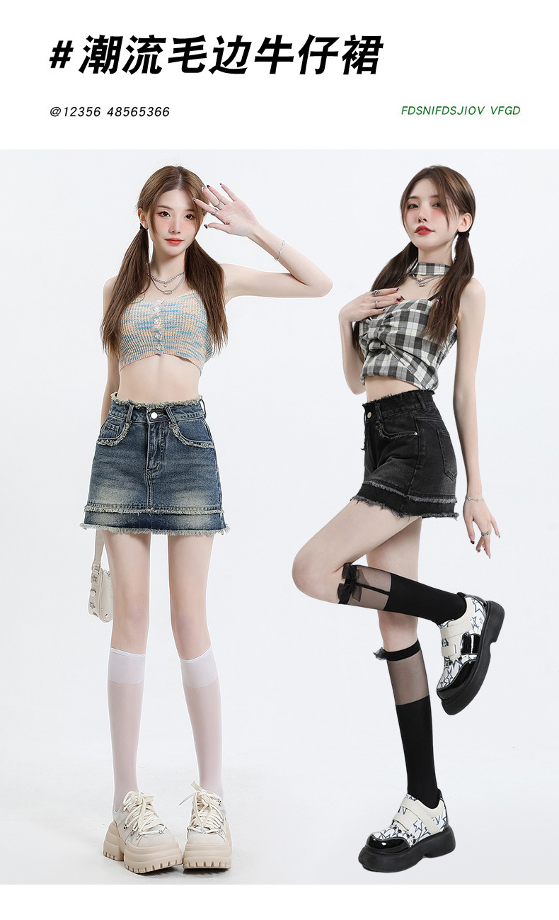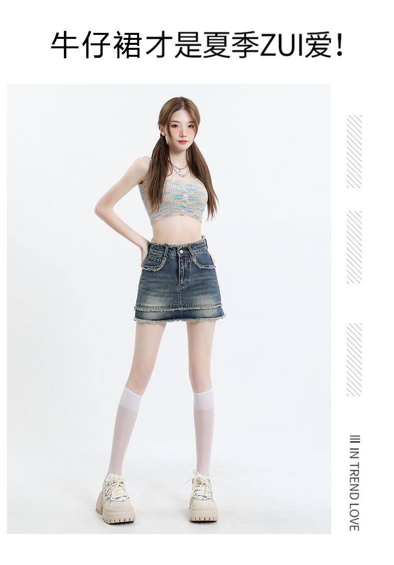검은 스파이스 소녀 데님 짧은 바지 스커트 A 자형 미끄럼 방지 힙합 스커트 여름 디자인 틈새 높은 허리 슬리밍스토어 가기
