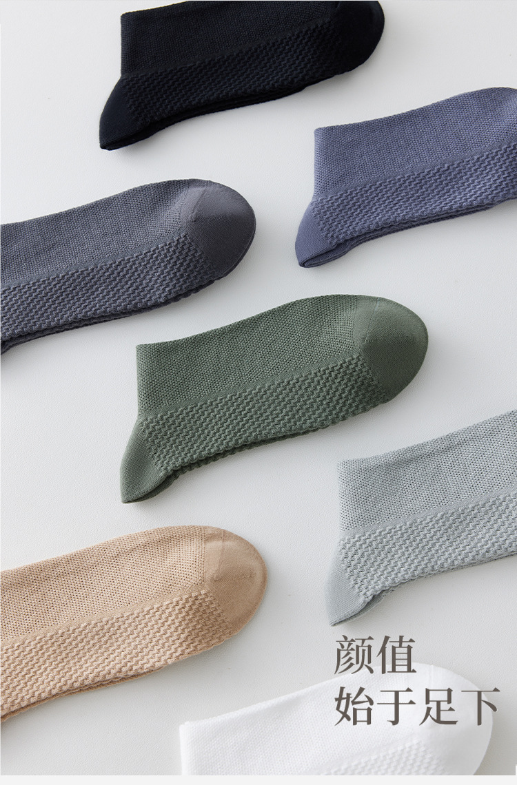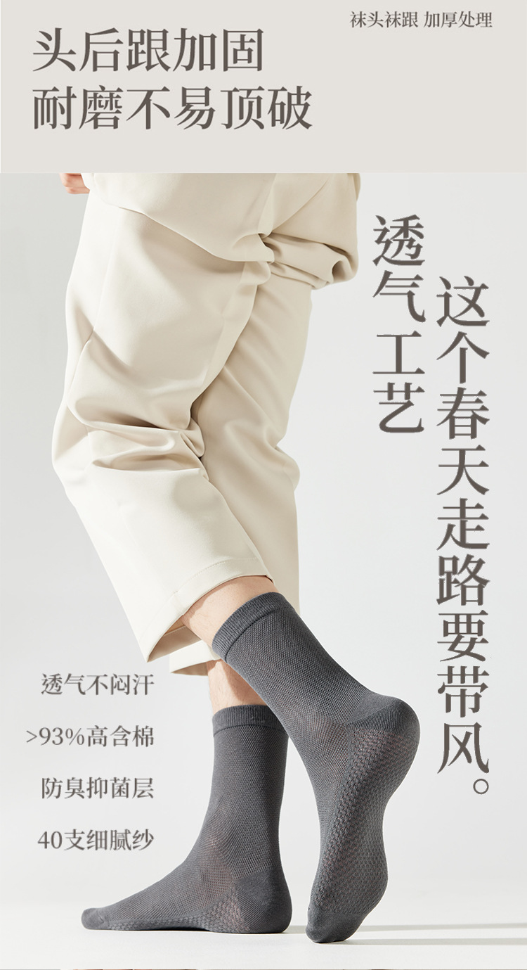 양말 남자의 여름 얇은 단색 땀 흡수 냄새 흡수 중간 의자 양말 봄과 가을 순수 면 통기성 메쉬 긴 튜브 비즈니스 양말스토어 가기
