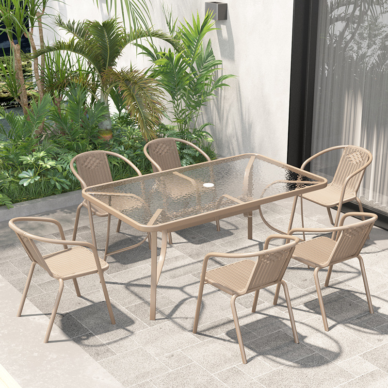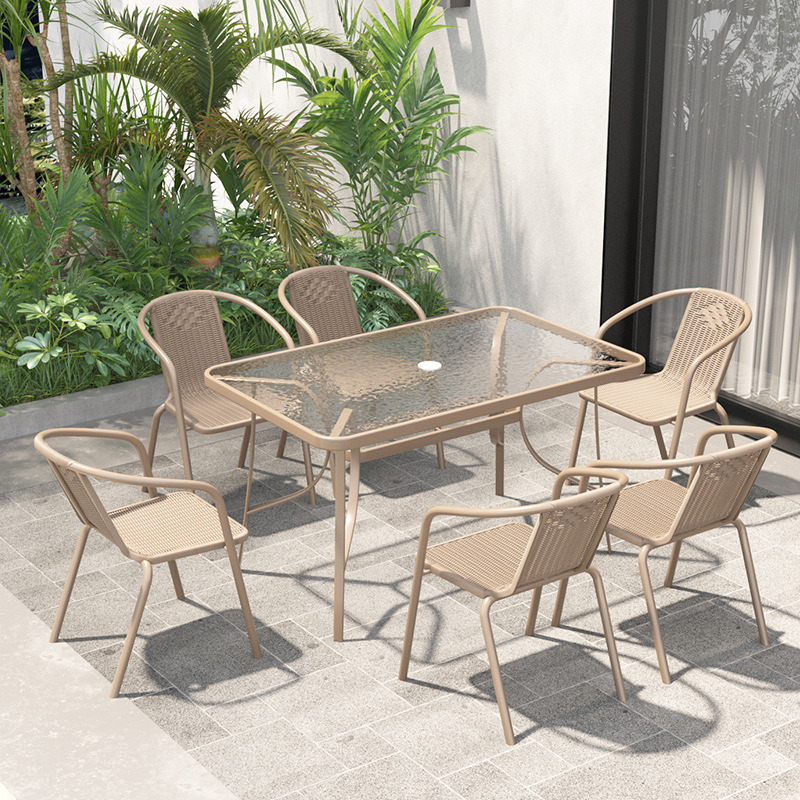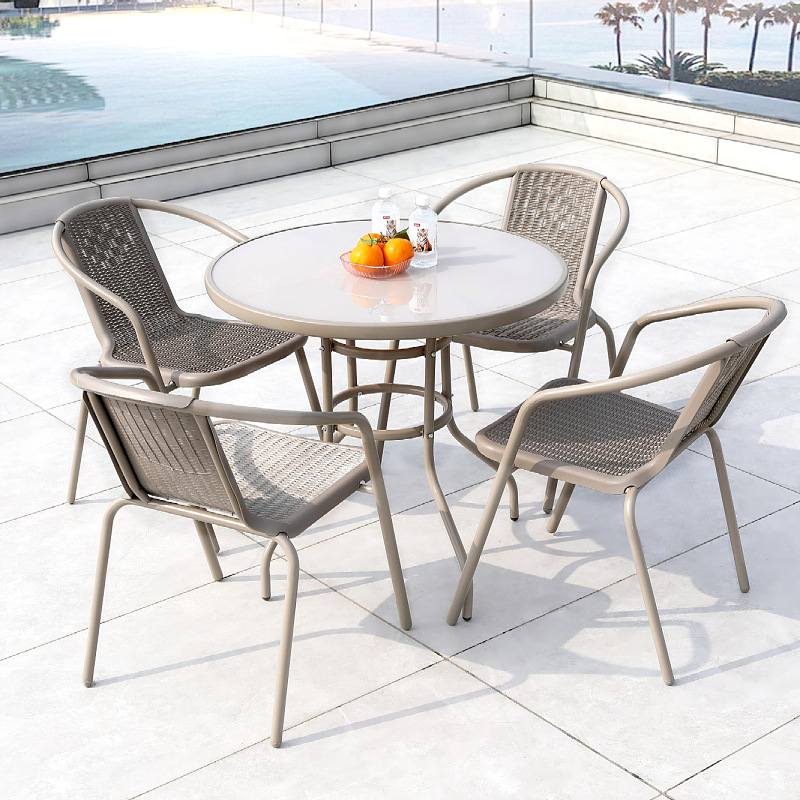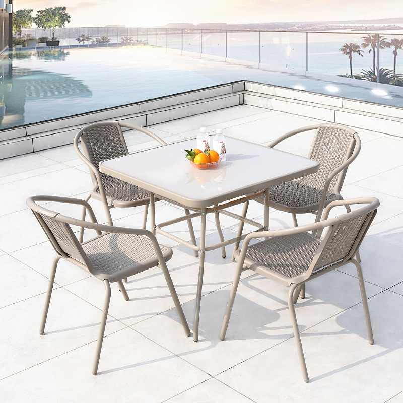 공장 직접 야외 안뜰 테이블과 의자 레저 테이블과 의자 조합 세트 빌라 정원 발코니 연철 유리 테이블과 의자