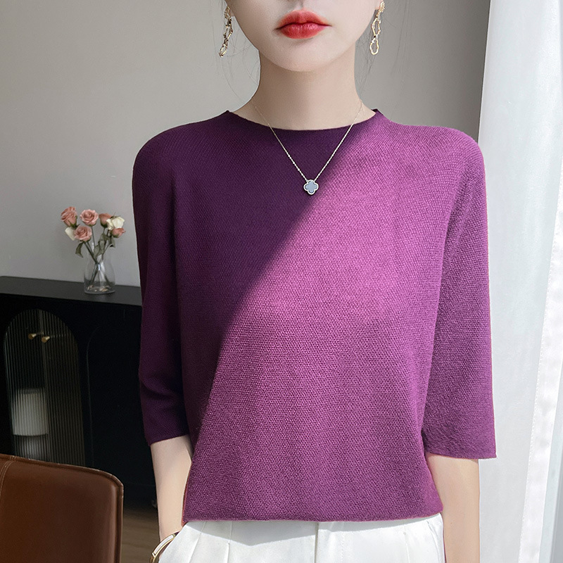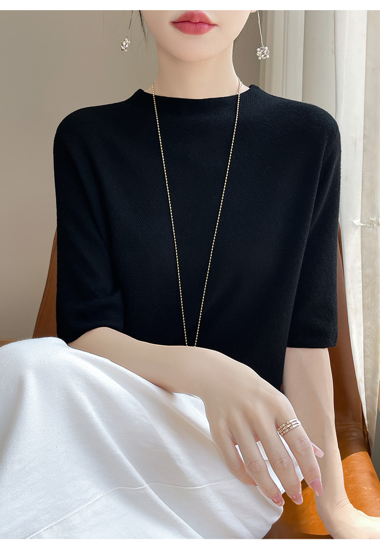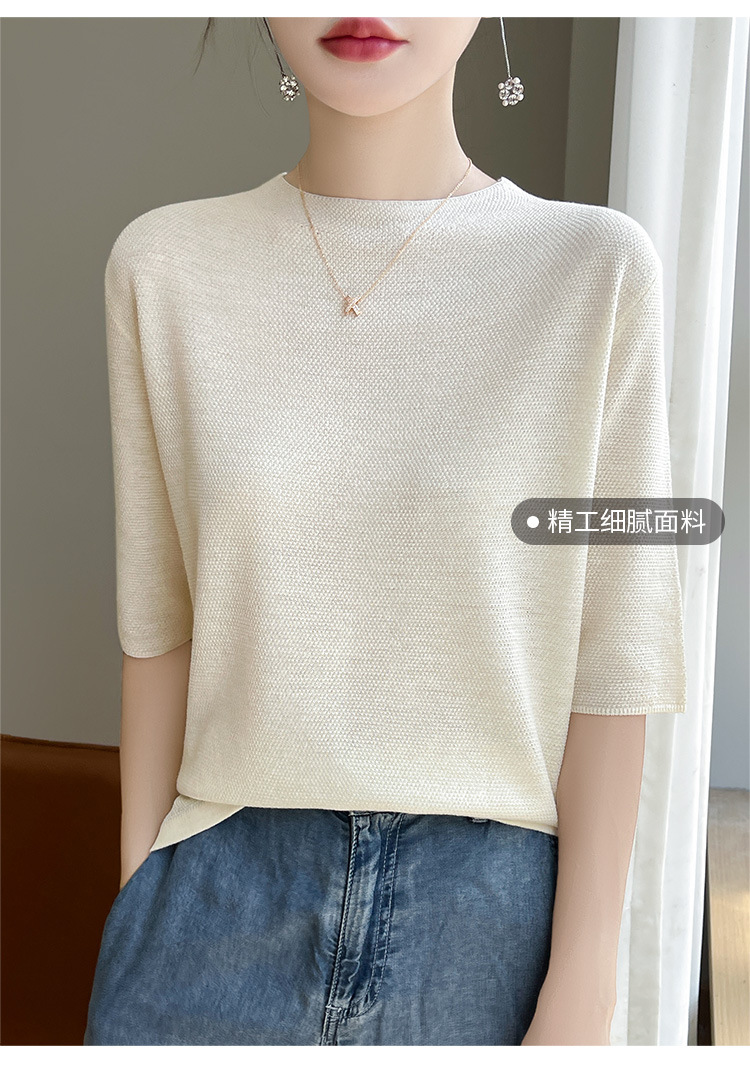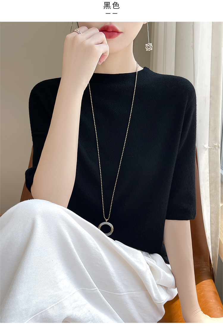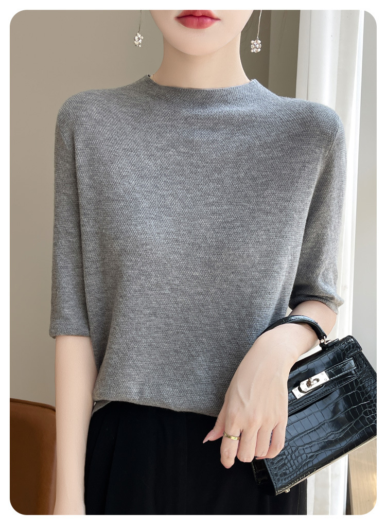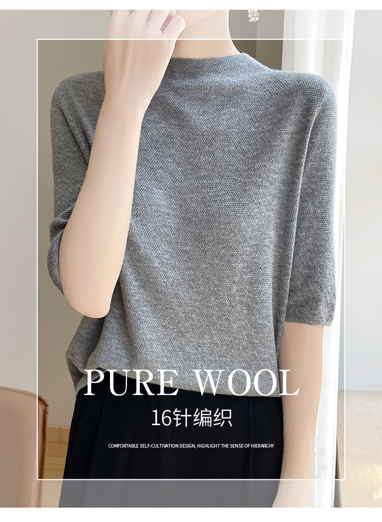 여성용 5부 소매 니트 반팔 티셔츠, 2026년 여름 신상, 16니트 고급 울 베이스 레이어 탑, 패셔너블한 티셔츠 이너웨어