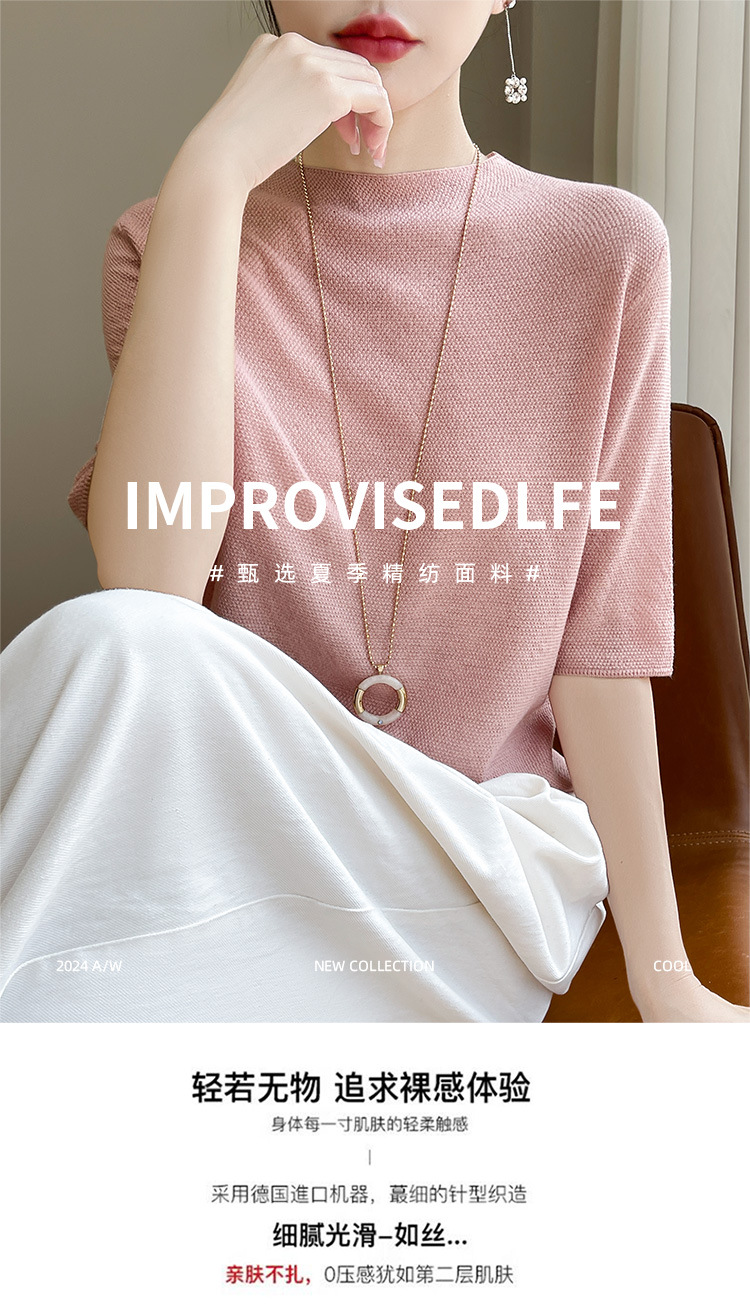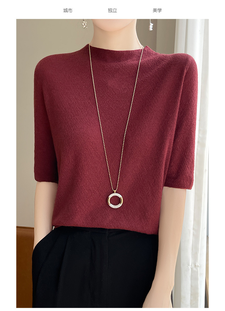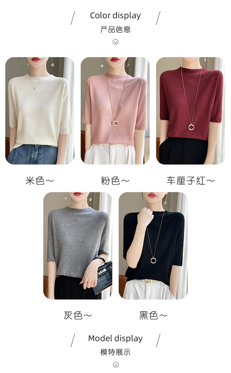 여성용 5부 소매 니트 반팔 티셔츠, 2026년 여름 신상, 16니트 고급 울 베이스 레이어 탑, 패셔너블한 티셔츠 이너웨어스토어 가기