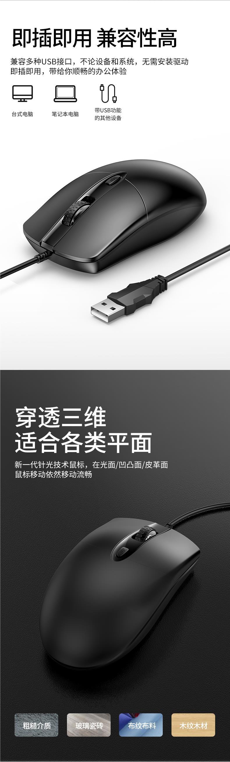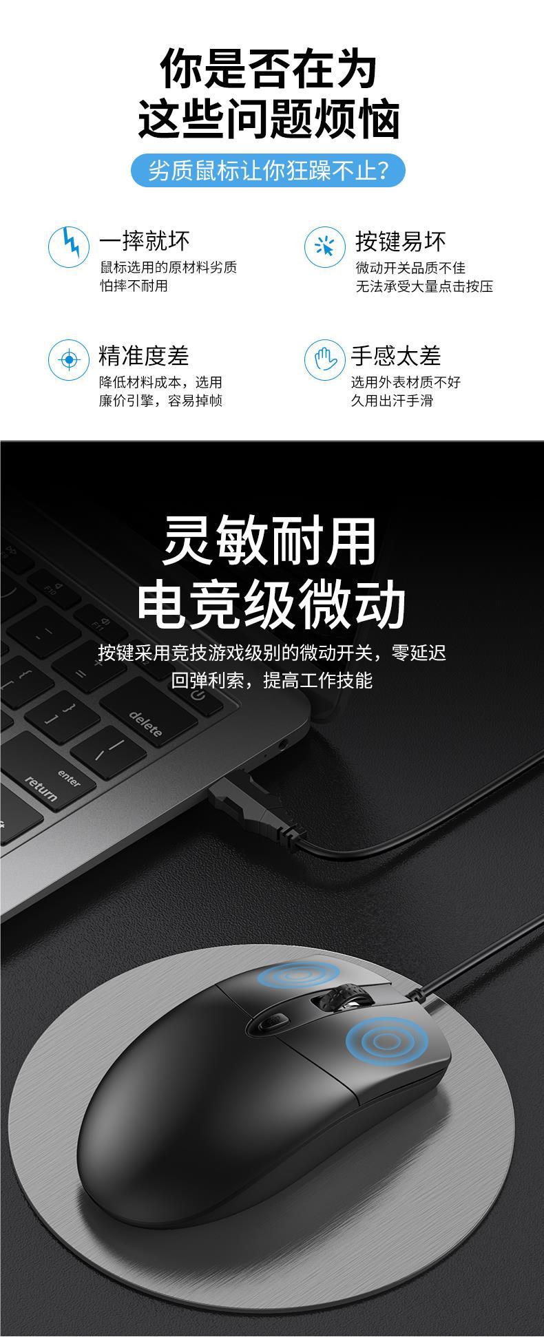 鼠标有线USB静音无声家用办公台式笔记本电脑商务cf电竞游戏lol男