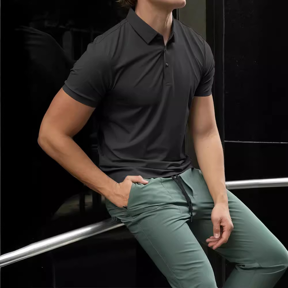 무봉제 열압축 셔츠 남성용 반팔 폴로셔츠 골프 티셔츠 비즈니스 폴로 남성용 폴로웨어 통기성 가볍고 얇음스토어 가기