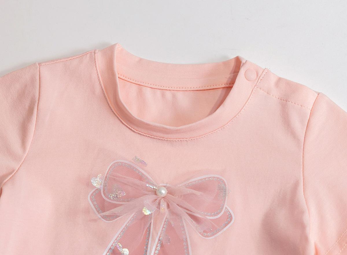 소녀 아동복 여름 반팔 캔디 컬러 서양식 심플 거즈 보우 중소 어린이 반팔 스위트 티셔츠