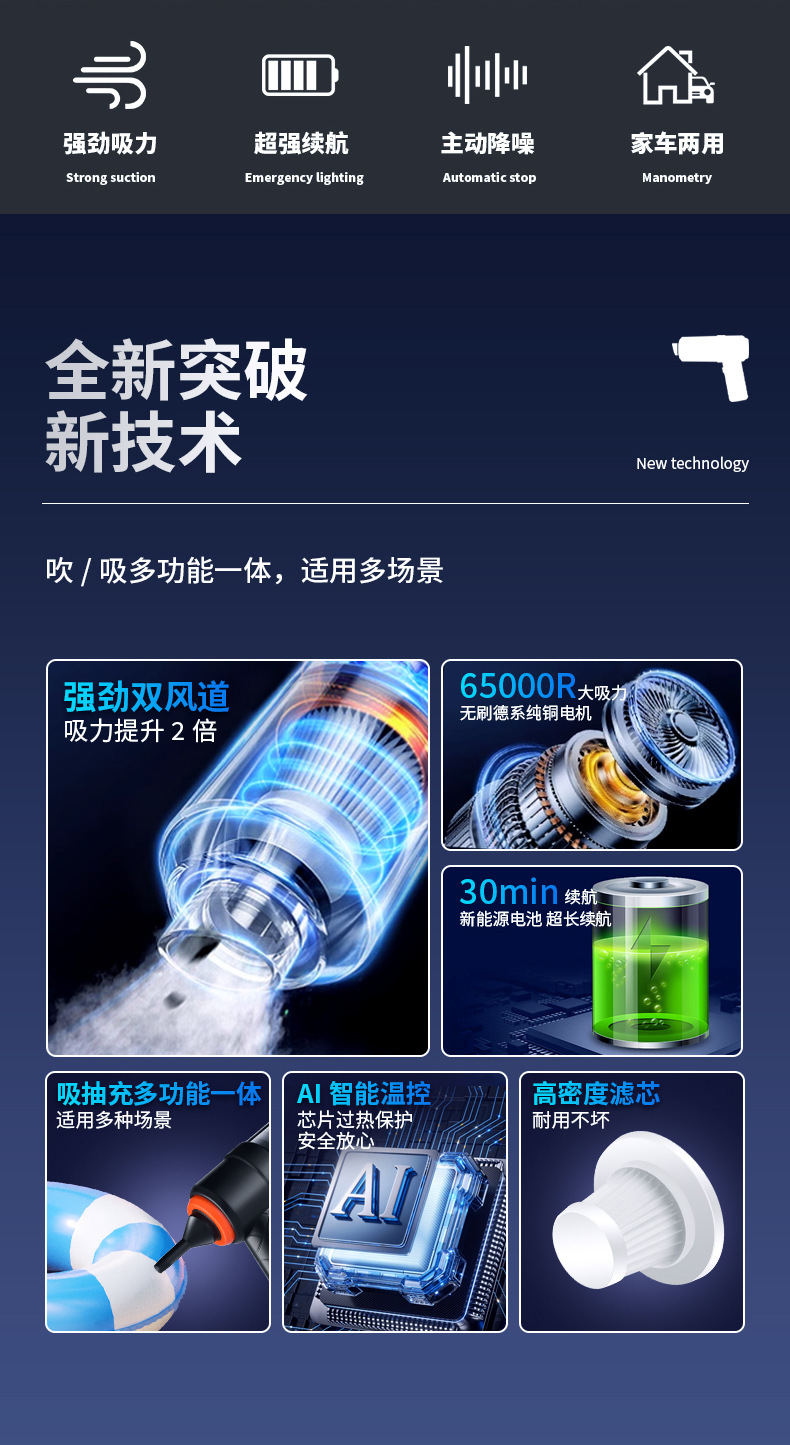 휴대용 휴대용 송풍 및 흡입 통합 가정용 고출력 자동차 무선 진공 청소기 대형 흡입 충전 미니 집진기스토어 가기