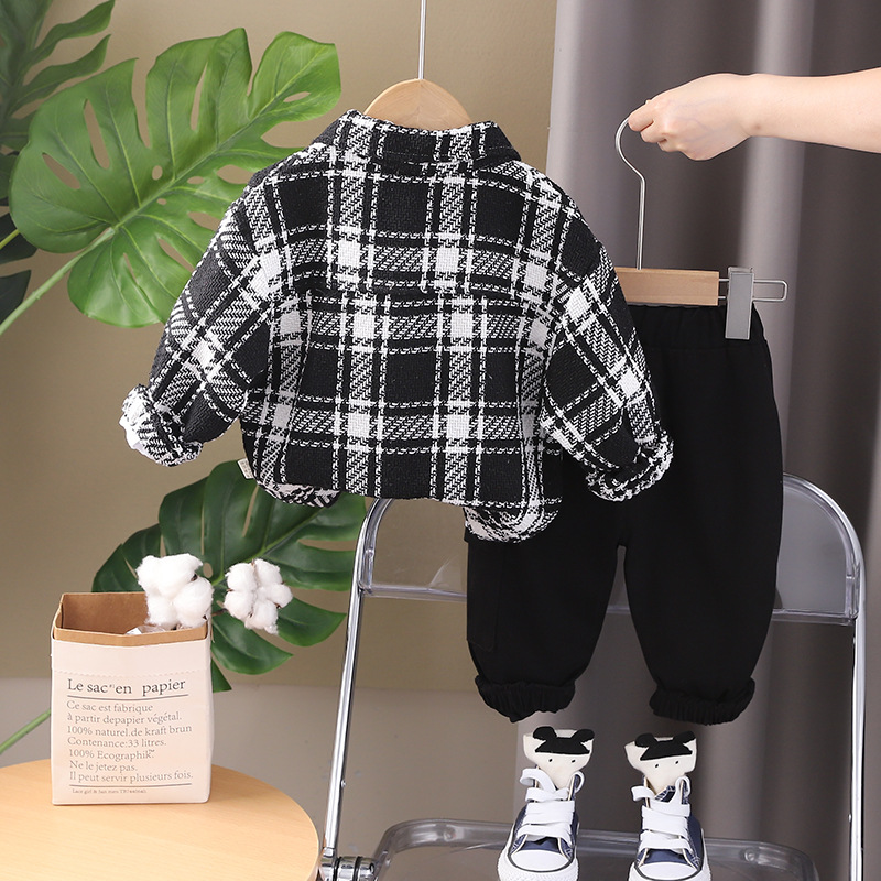 봄과 가을 남녀 세트 격자 무늬 3 종 세트 어린이 2024 봄과 가을 땀 세트 잘 생긴 아기스토어 가기