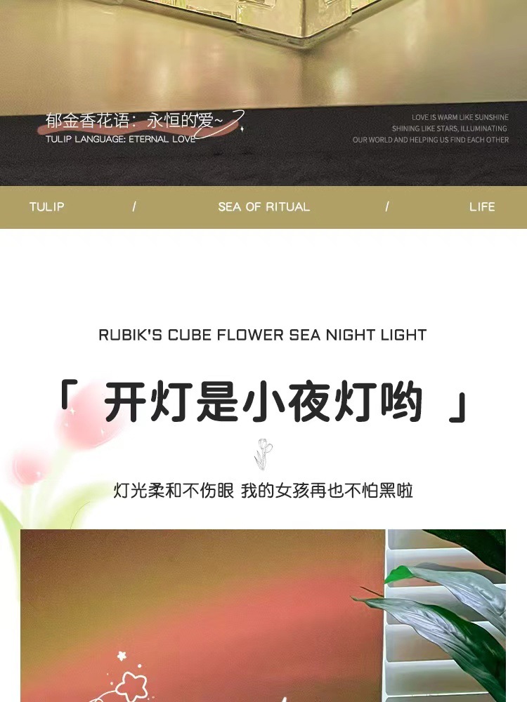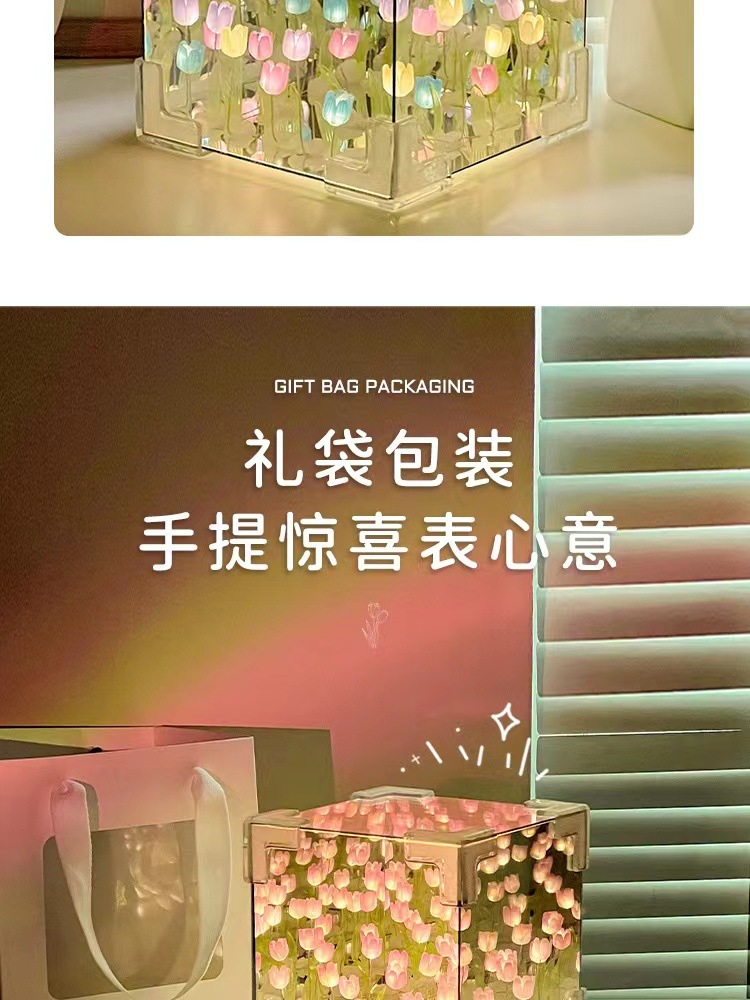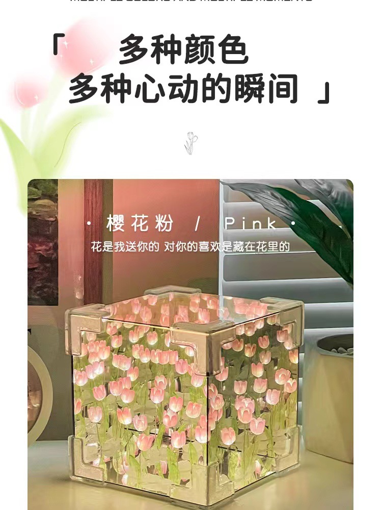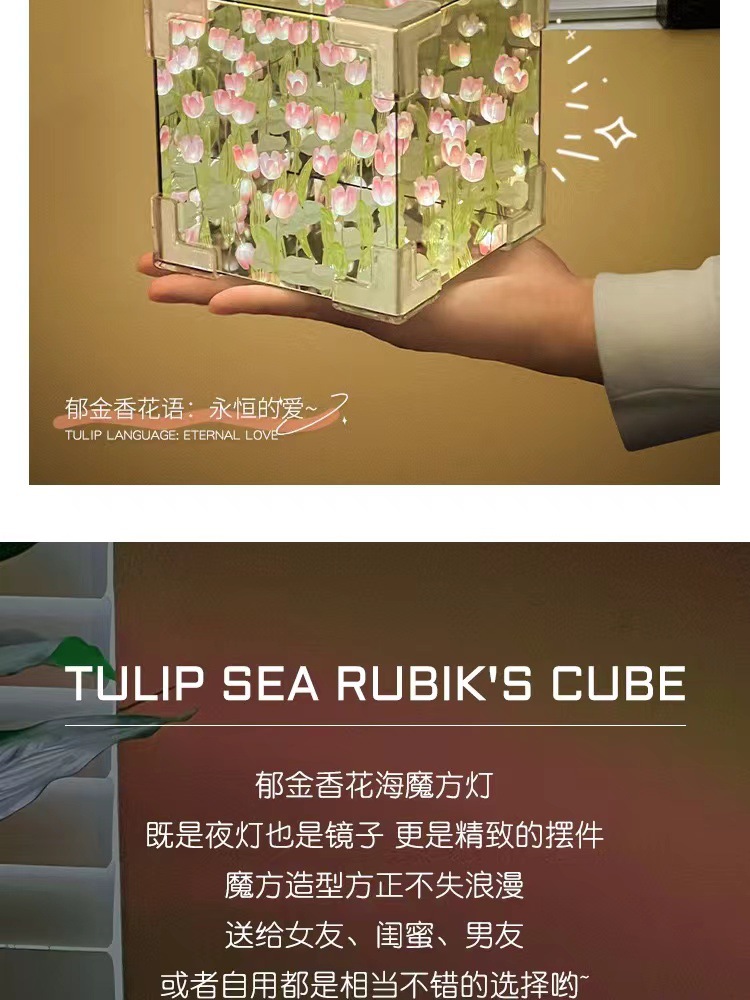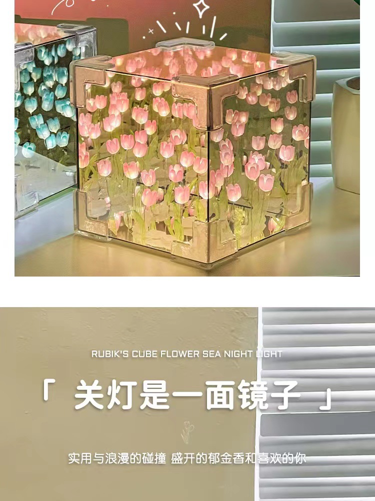 튤립 꽃 바다 루빅의 큐브 나이트 라이트 수제 DIY 수제 소재 가방 다나바타 여자 친구 커플 선물