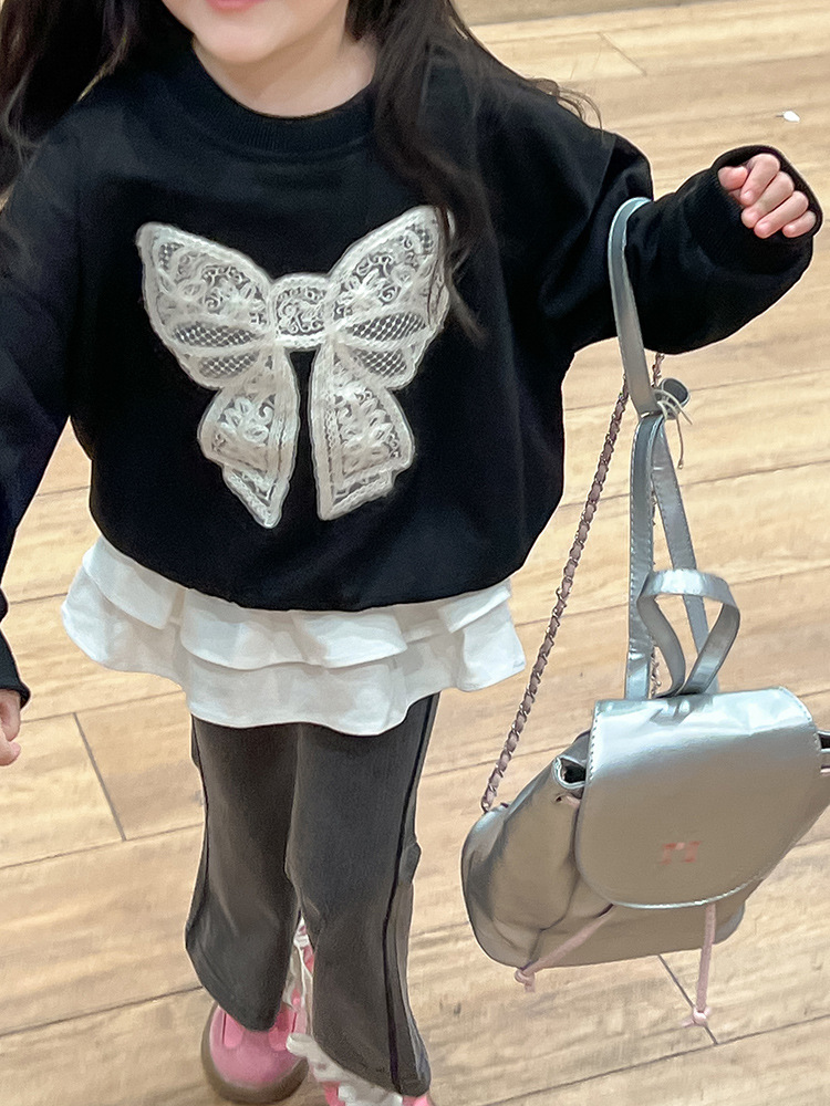 가을 2024 새로운 스타일 레이스 활 스웨터 스택 케이크 스커트 웨스턴 스타일 빈티지 플레어 바지 세트