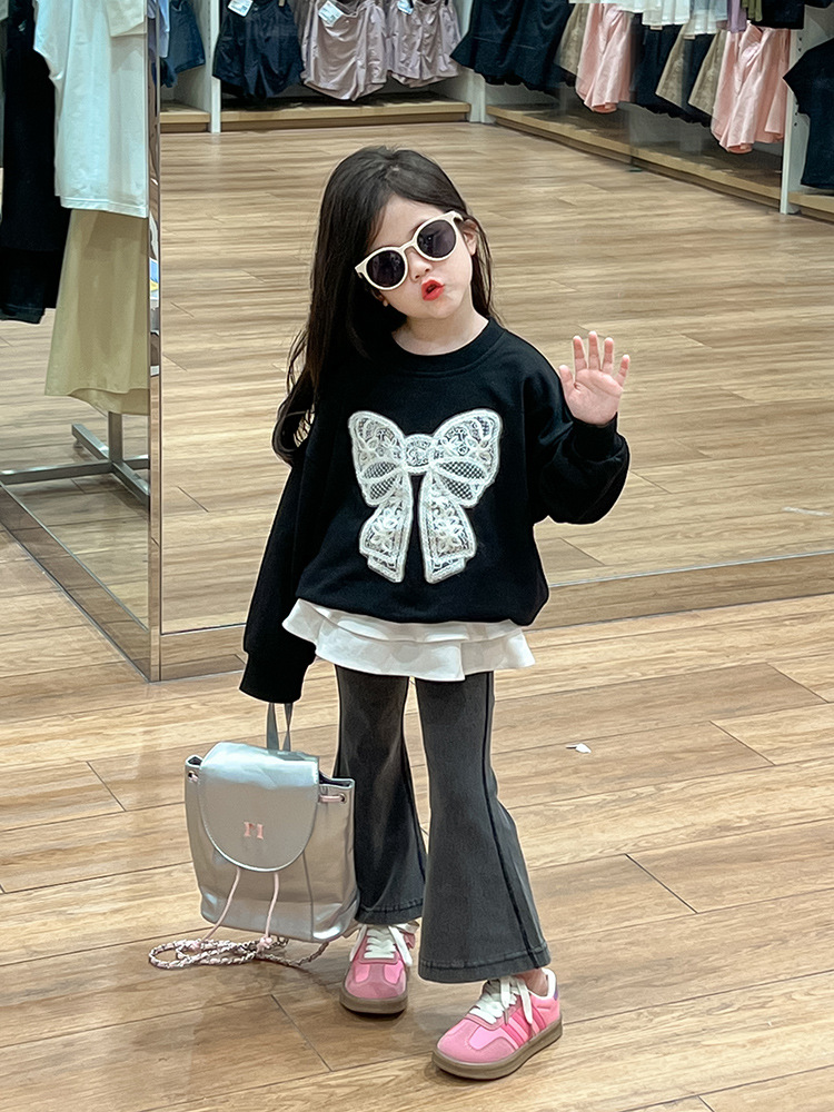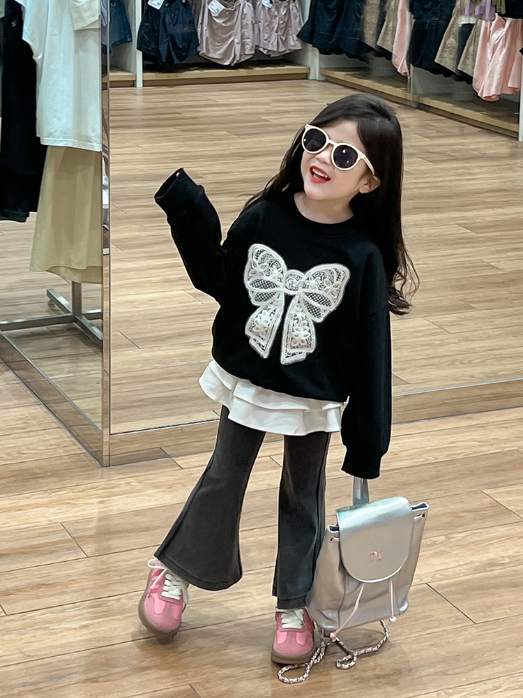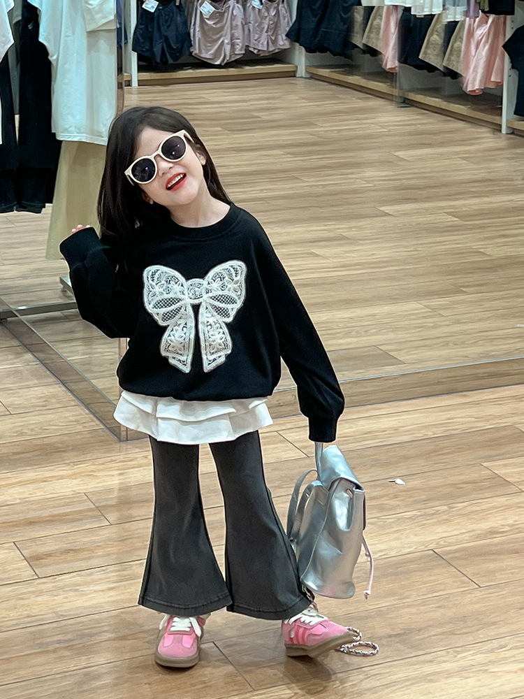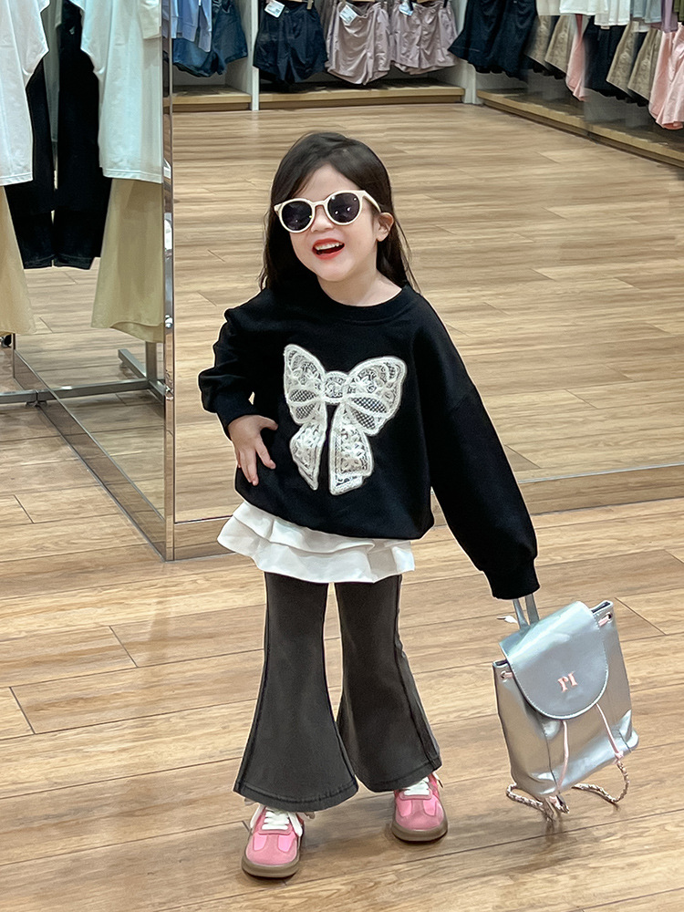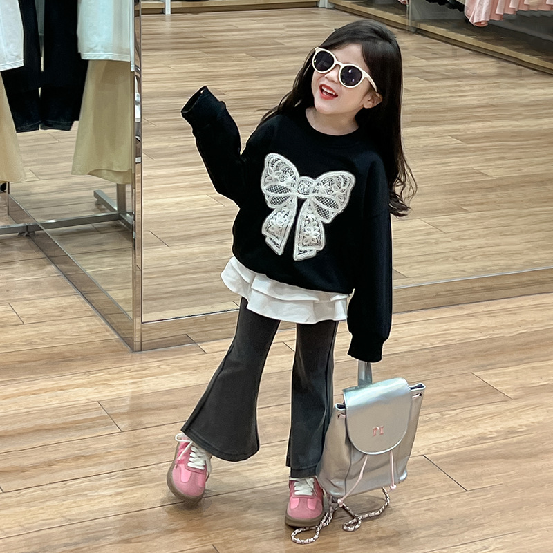 가을 2024 새로운 스타일 레이스 활 스웨터 스택 케이크 스커트 웨스턴 스타일 빈티지 플레어 바지 세트스토어 가기