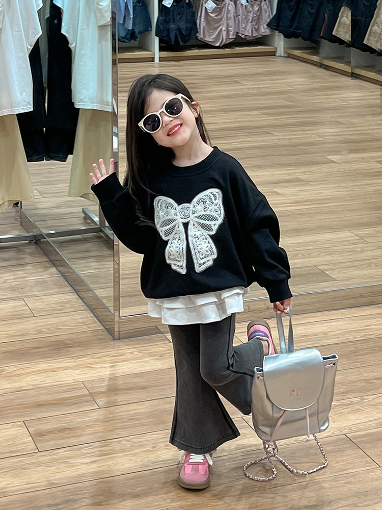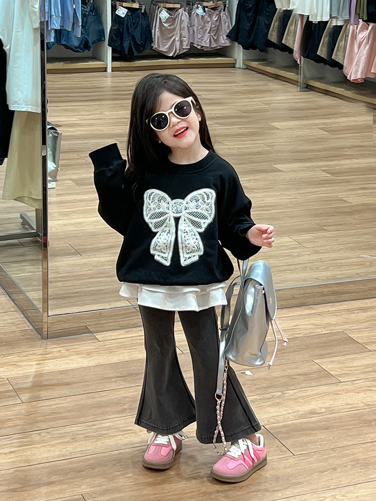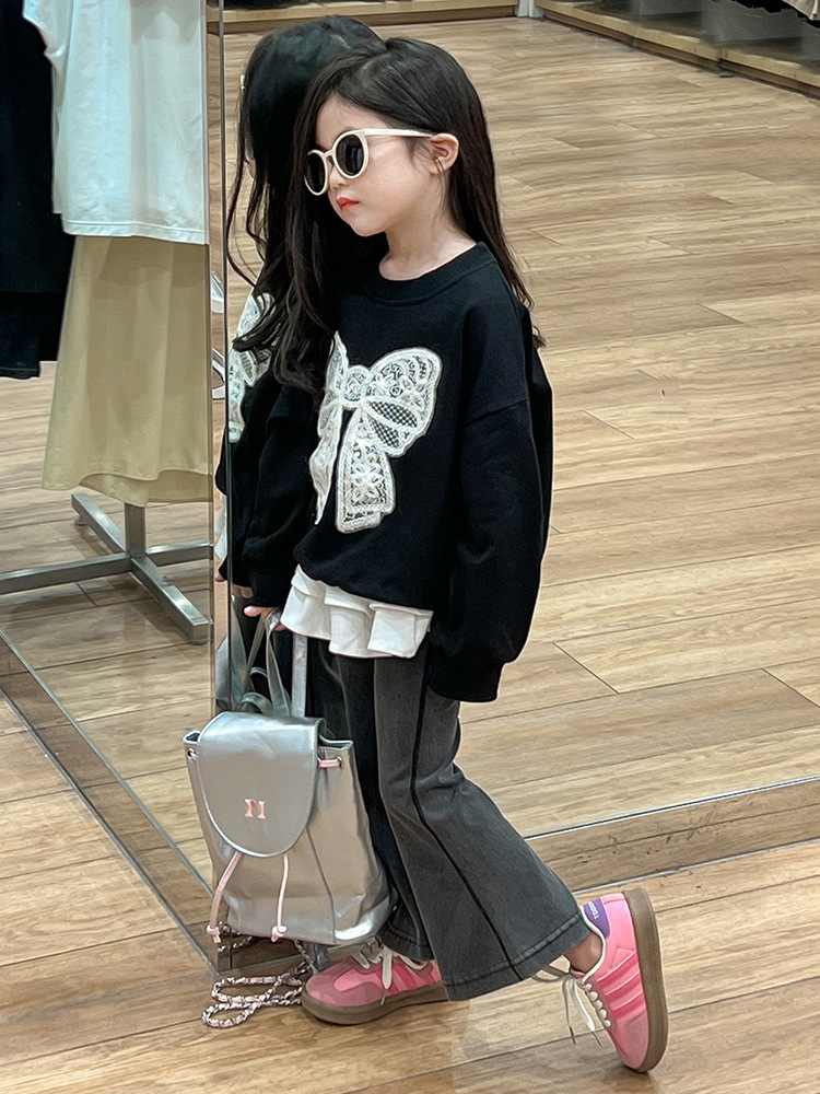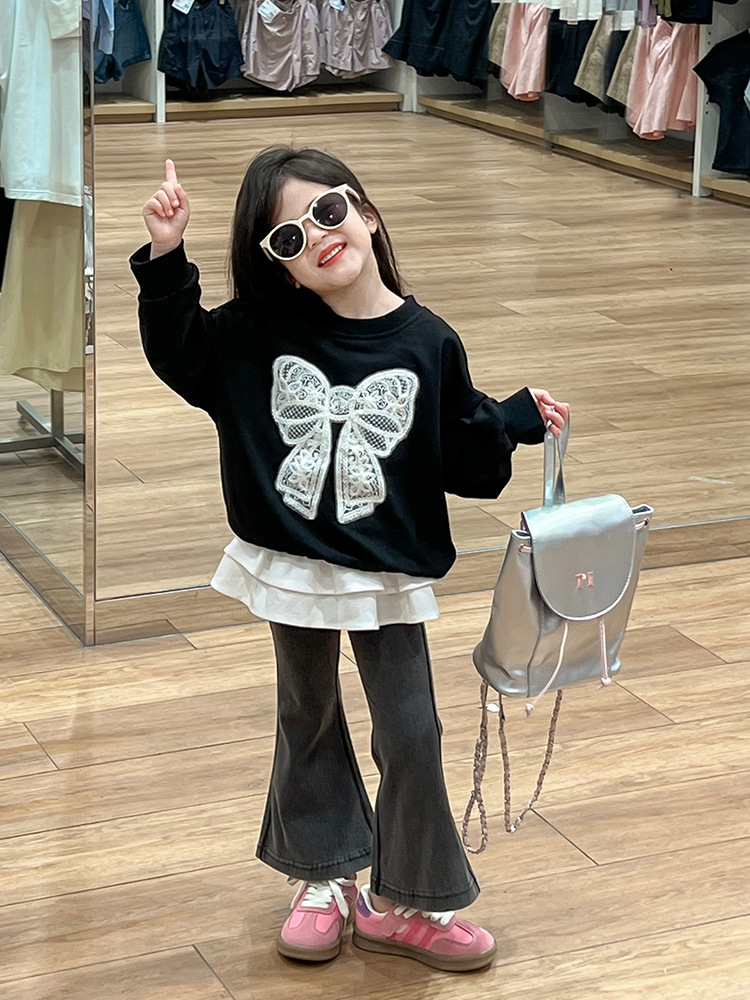 가을 2024 새로운 스타일 레이스 활 스웨터 스택 케이크 스커트 웨스턴 스타일 빈티지 플레어 바지 세트스토어 가기