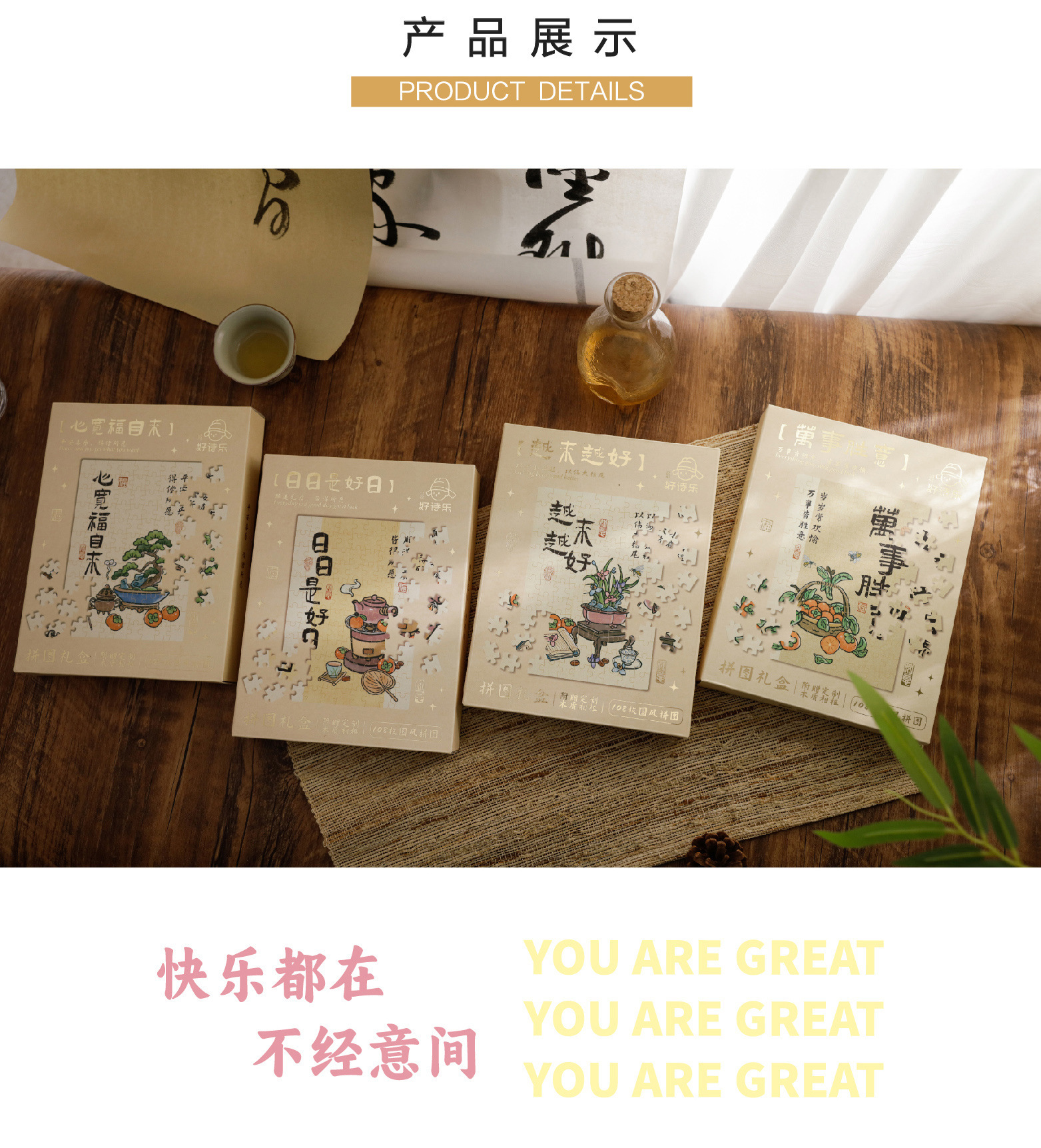 좋은시 음악 국가 스타일 퍼즐 선물 상자 모든 것이 새로운 중국 텍스트 그림 퍼즐 바탕 화면 장식 우승스토어 가기