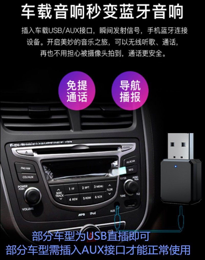 USB 자동차 블루투스 수신기 5.3 자동차 스피커 링 수정 된 오디오 어댑터 모듈 핸즈프리 통화 무손실스토어 가기