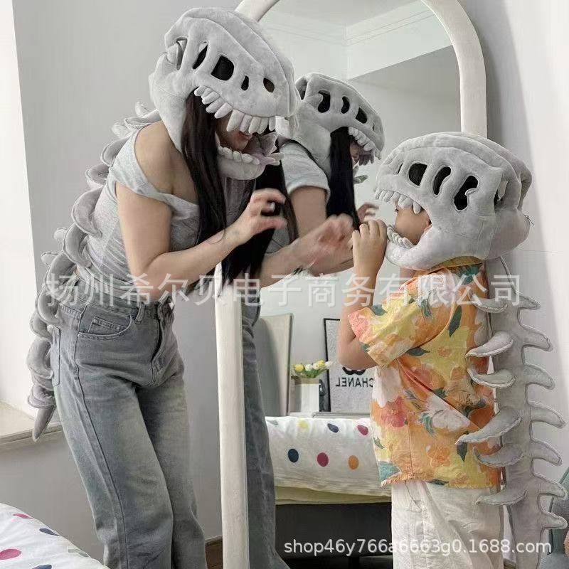 루한과 같은 스타일의 중국 공룡 해골 헤드기어 외골격 인형 모자 남자친구 생일 및 명절 선물 여자용스토어 가기