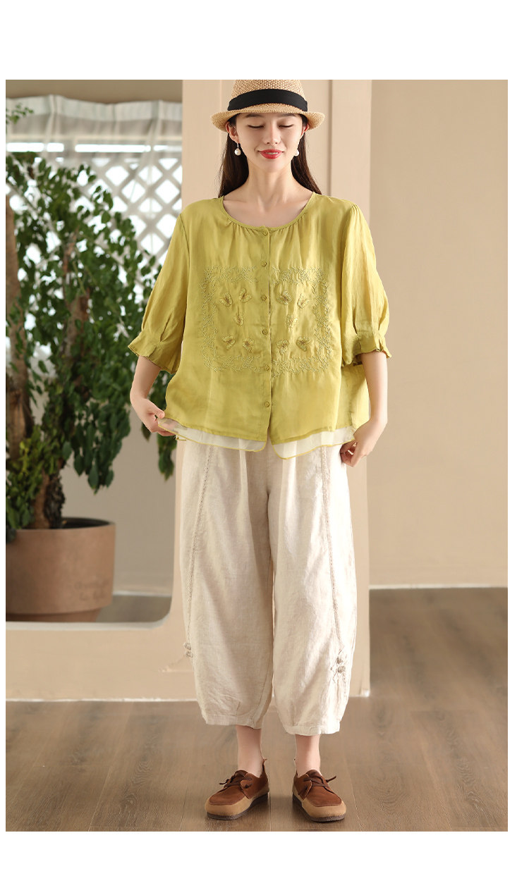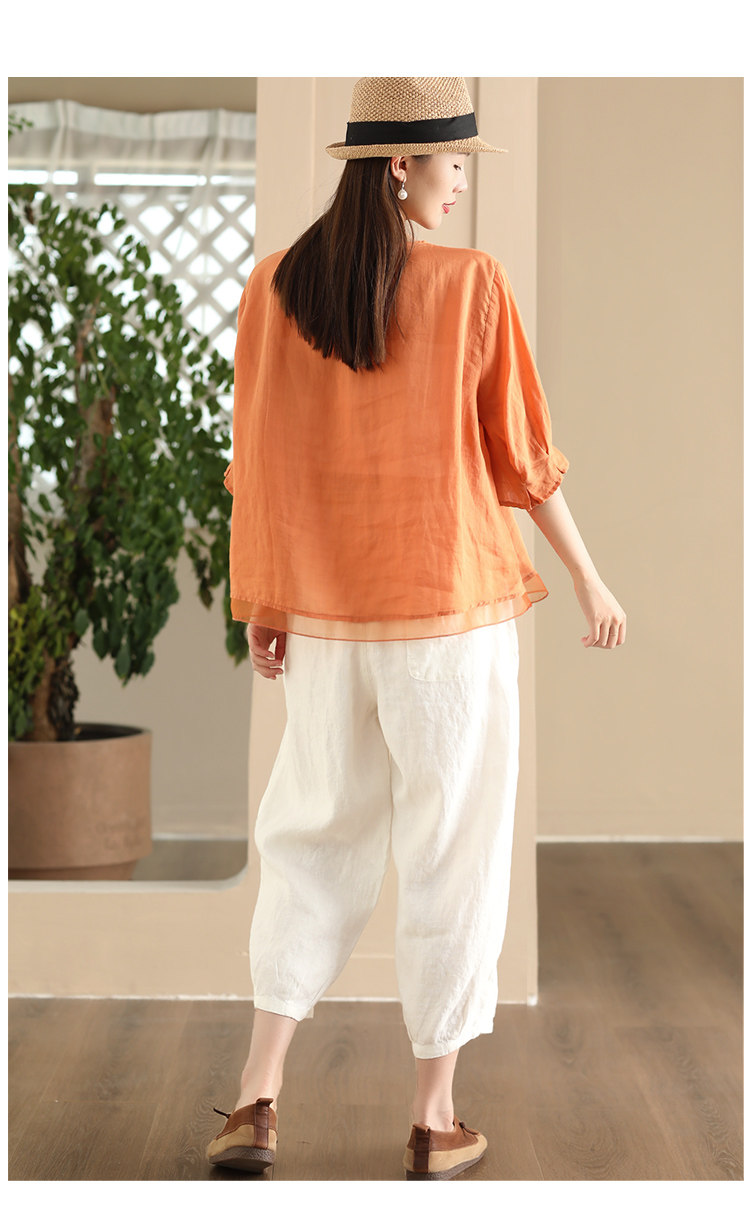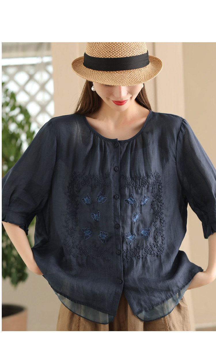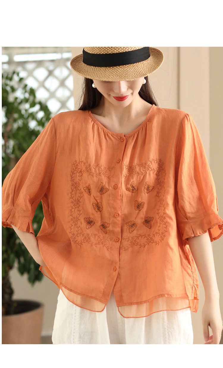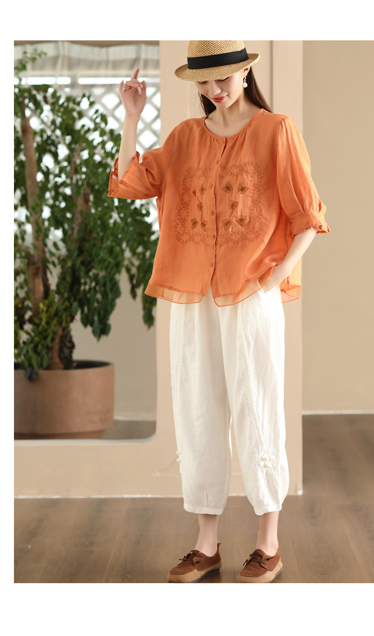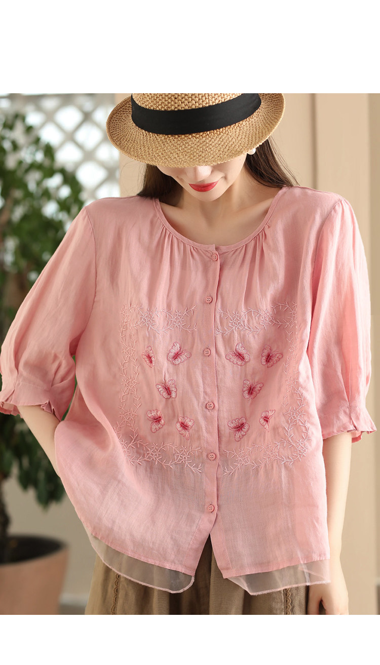 빈티지 3 차원 자수 라미 셔츠 바느질 Organza 손으로 반죽 주름 셔츠 우아한 탑