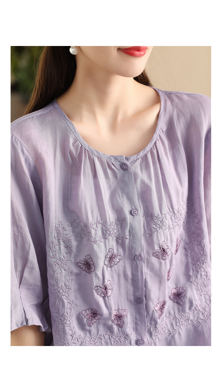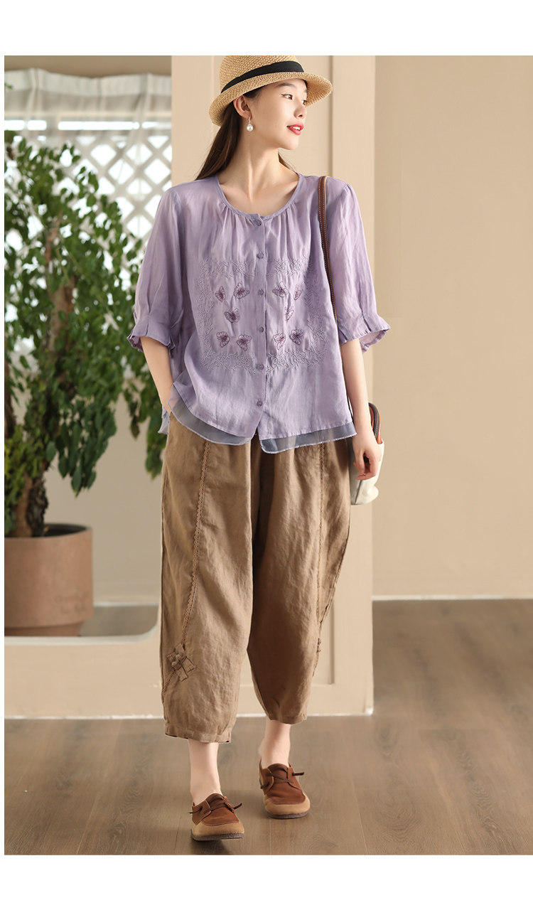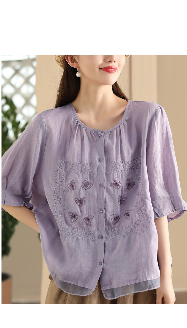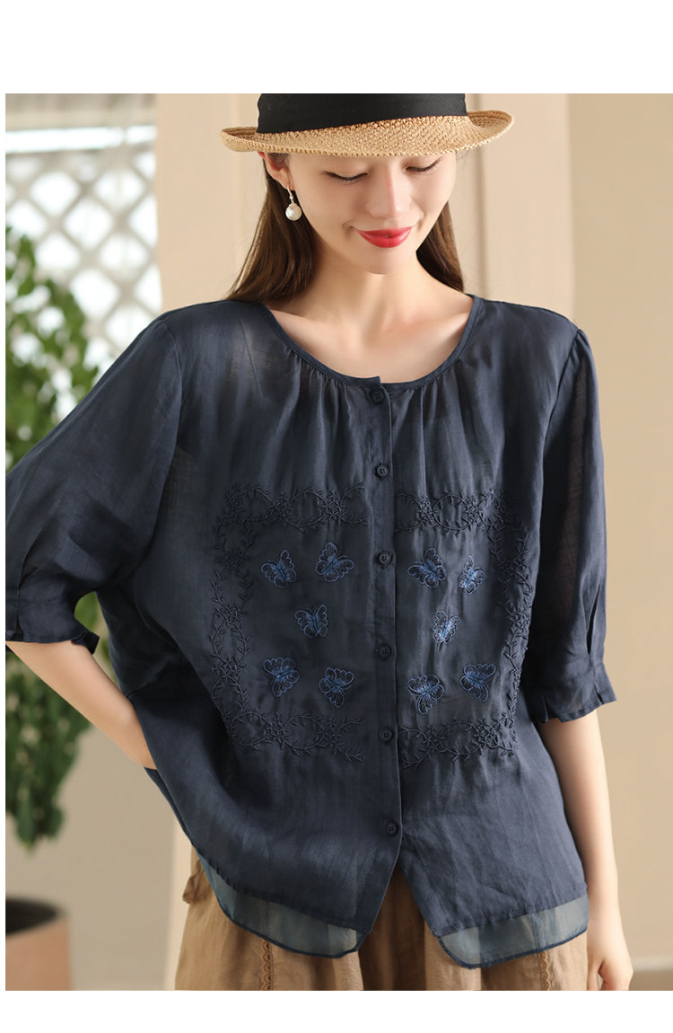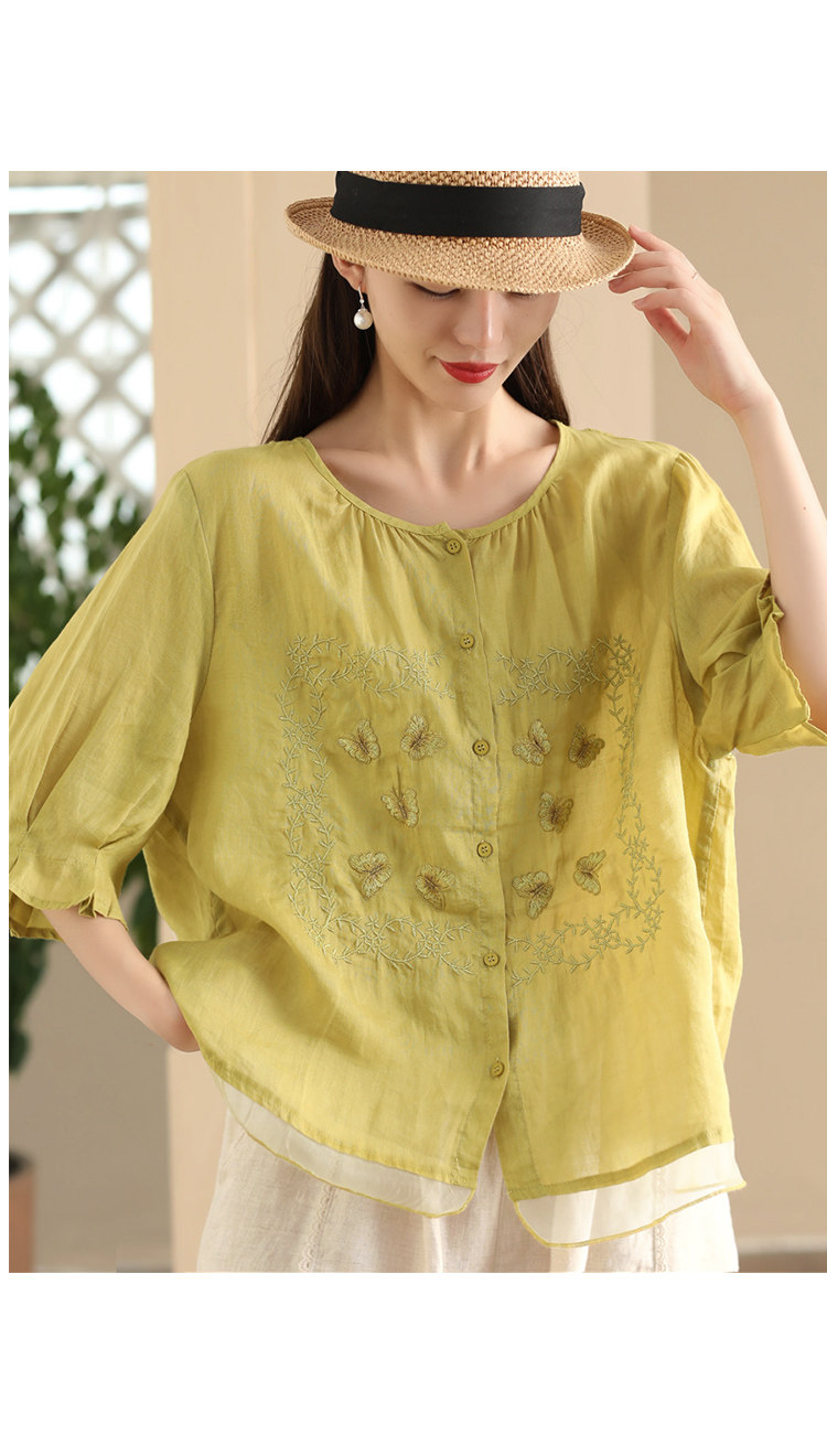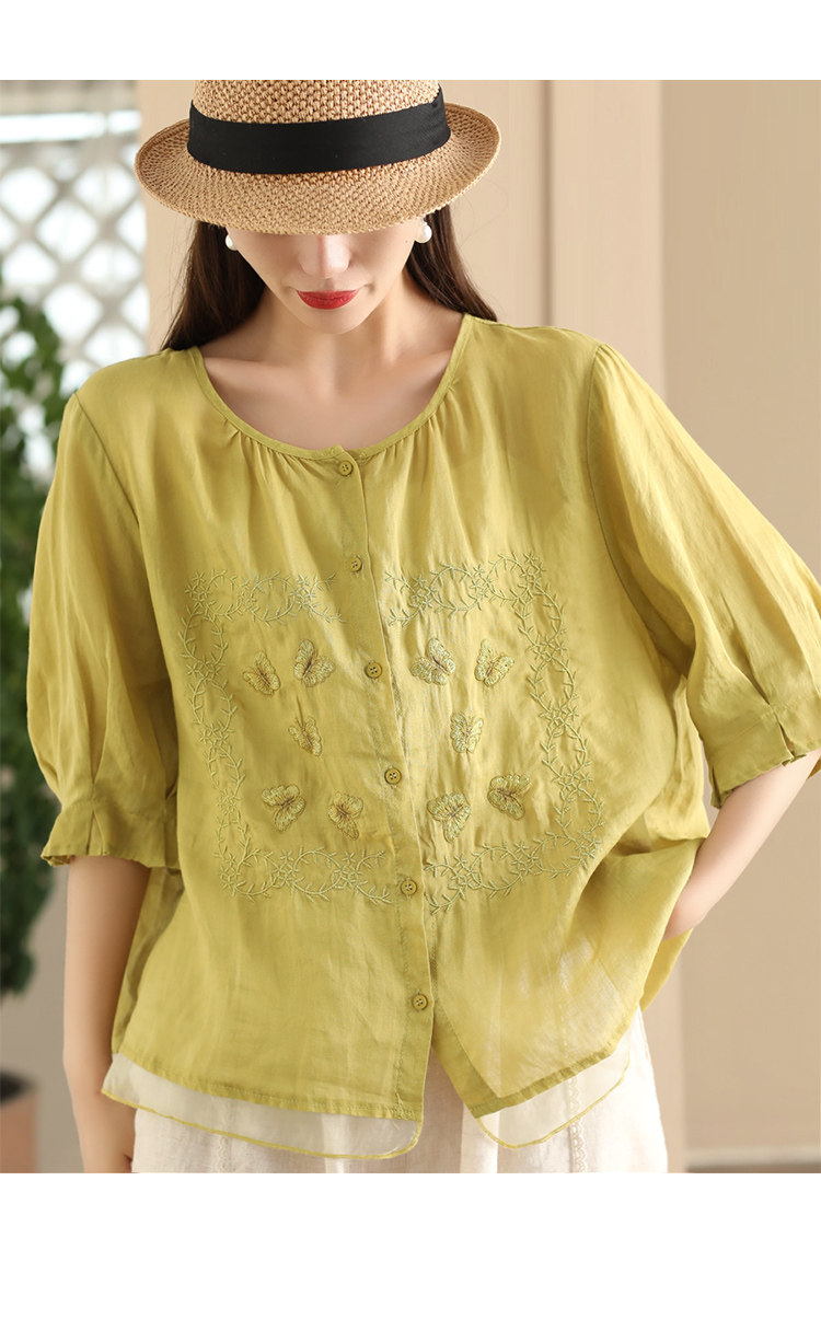 빈티지 3 차원 자수 라미 셔츠 바느질 Organza 손으로 반죽 주름 셔츠 우아한 탑