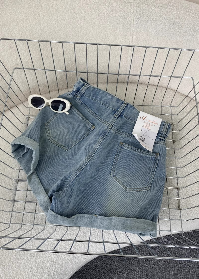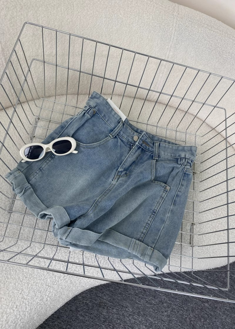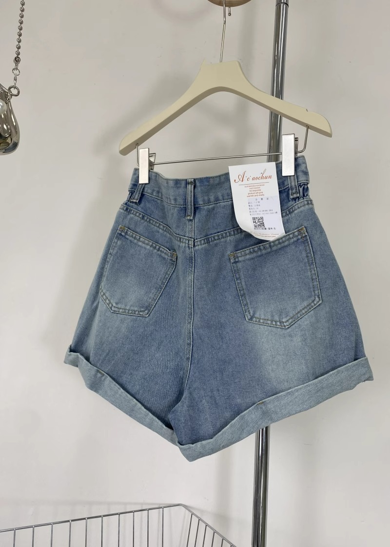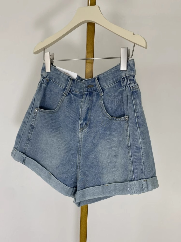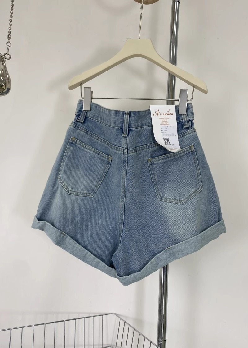 2024 느슨한 컬 데님 반바지 여성 여름 새로운 틈새 디자인 센스 높은 허리 A 라인 바지 넓은 다리 핫 바지스토어 가기