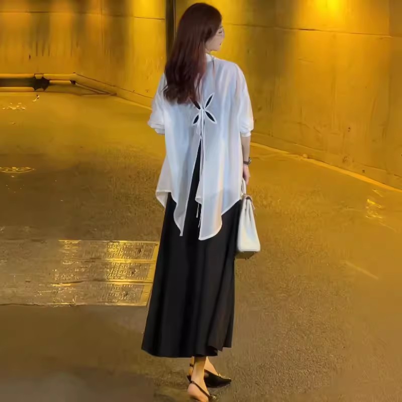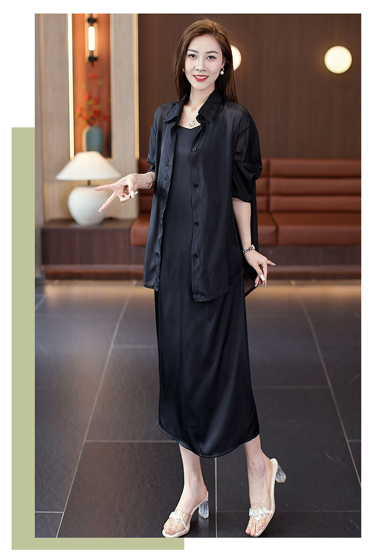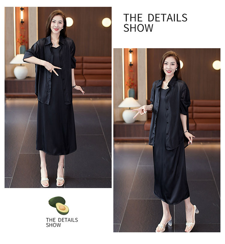 세련된 원피스 세트 여성용 여름 새 서양식 선스크린 셔츠 슬립 스커트 롱 스커트 투피스 유행 세트스토어 가기