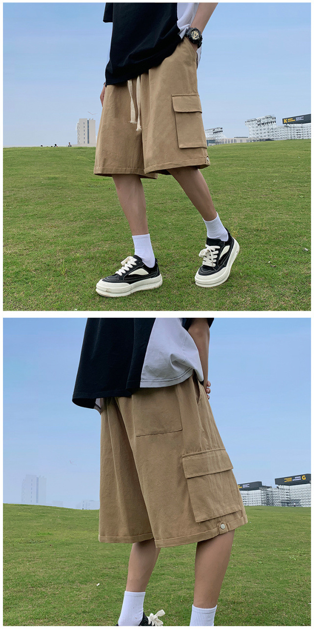 소년을위한 큰 포켓 작업복 반바지 아메리칸 스타일 레트로 플러스 사이즈 느슨한 캐주얼 미드 팬츠 일본 스타일 트렌디 브랜드 오프 웨어 바지
