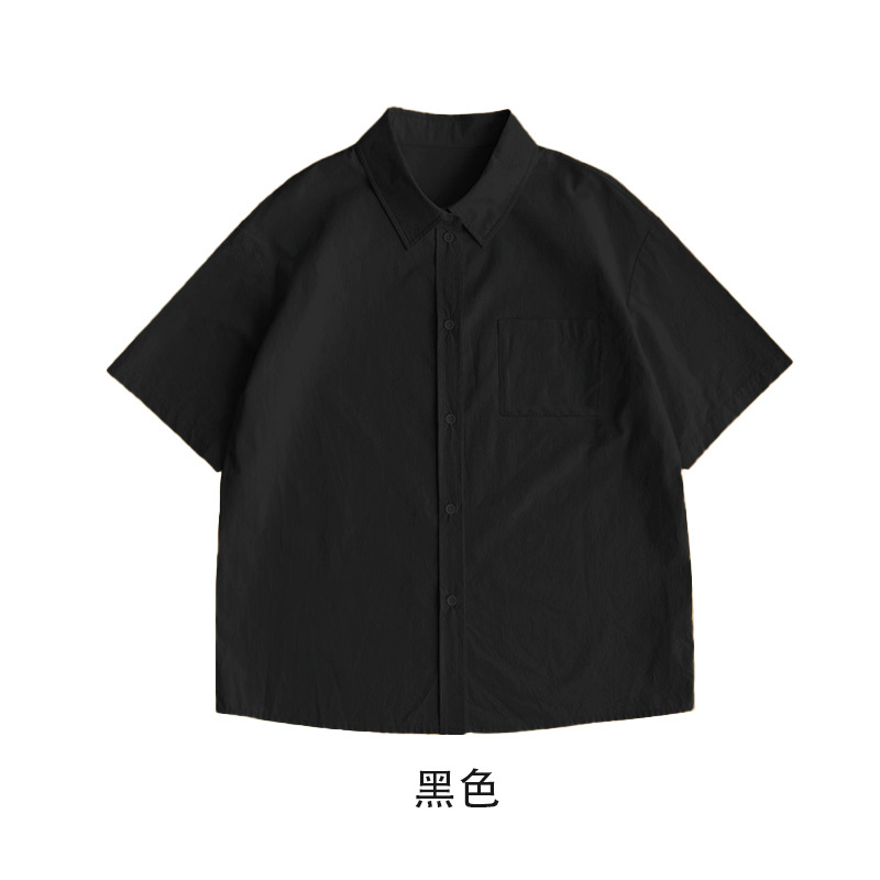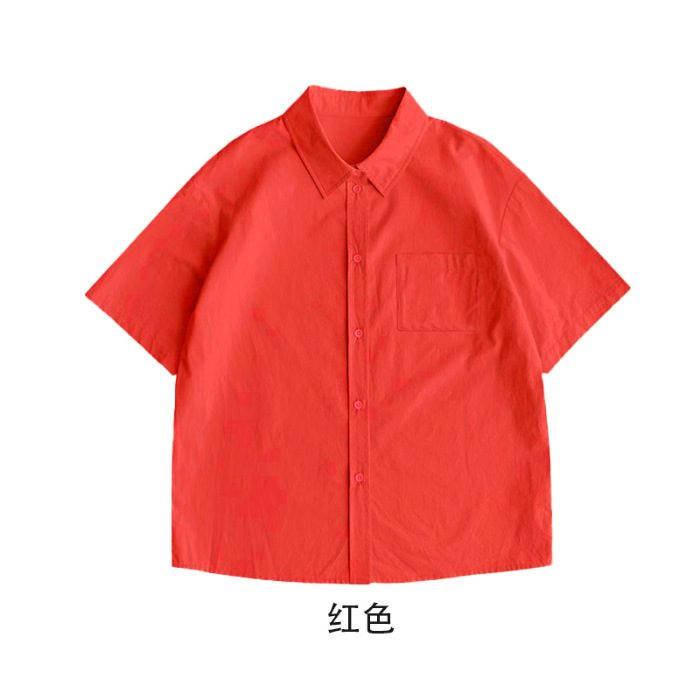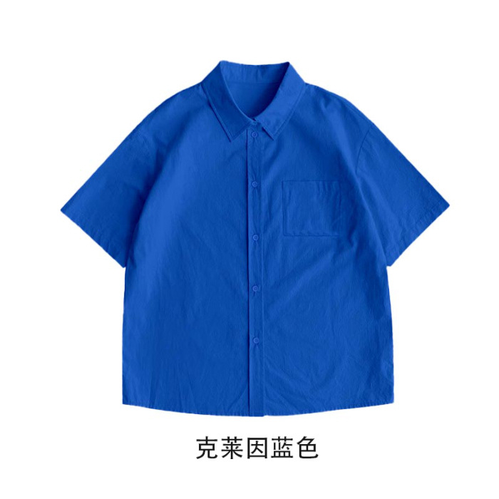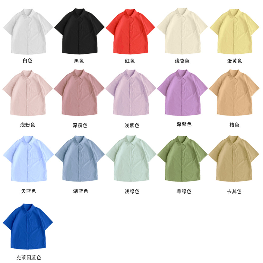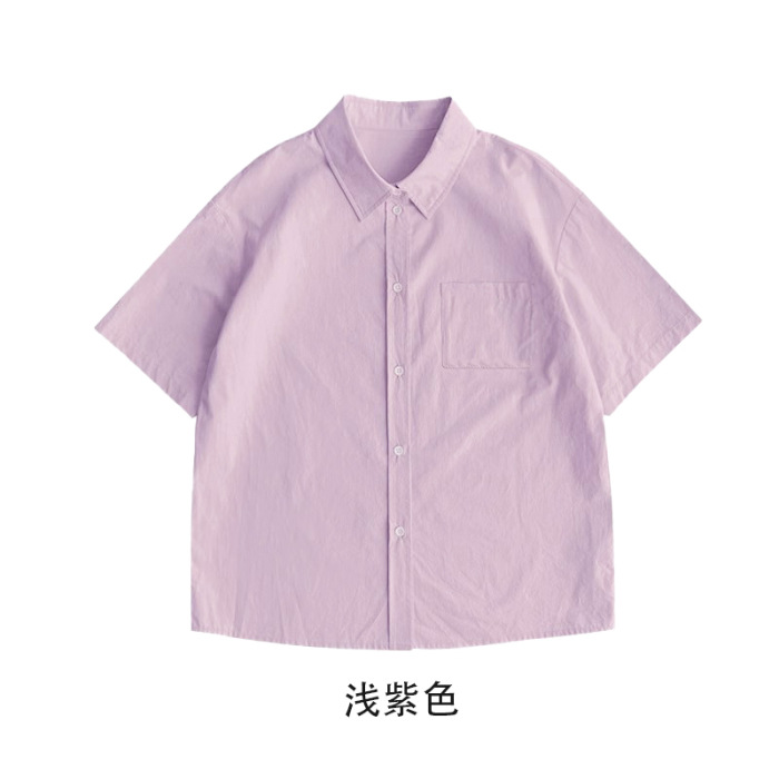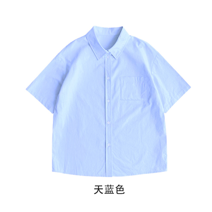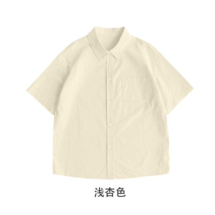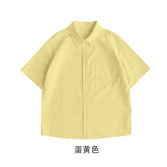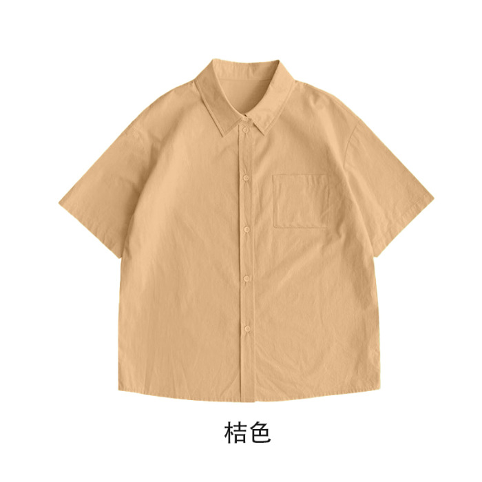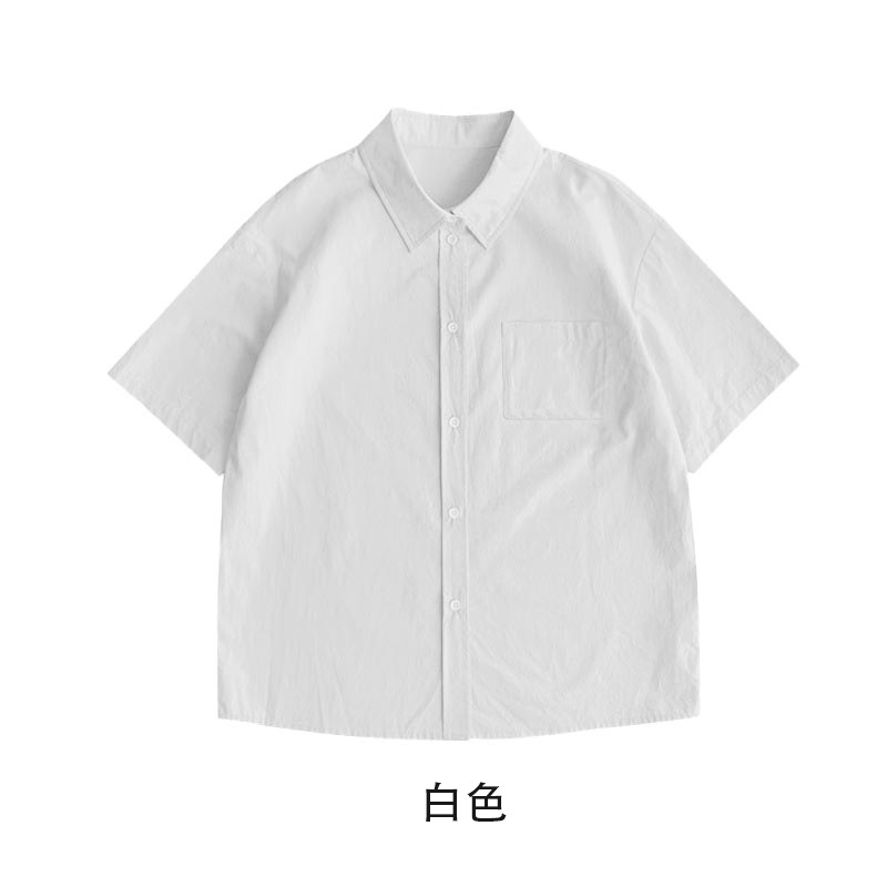 순수한면 싱글 백 짧은 소매 여름 새로운 남성과 여성의 단색 셔츠 탑 라이트 플레이트 문학 스타일 느슨한 카디건 재킷