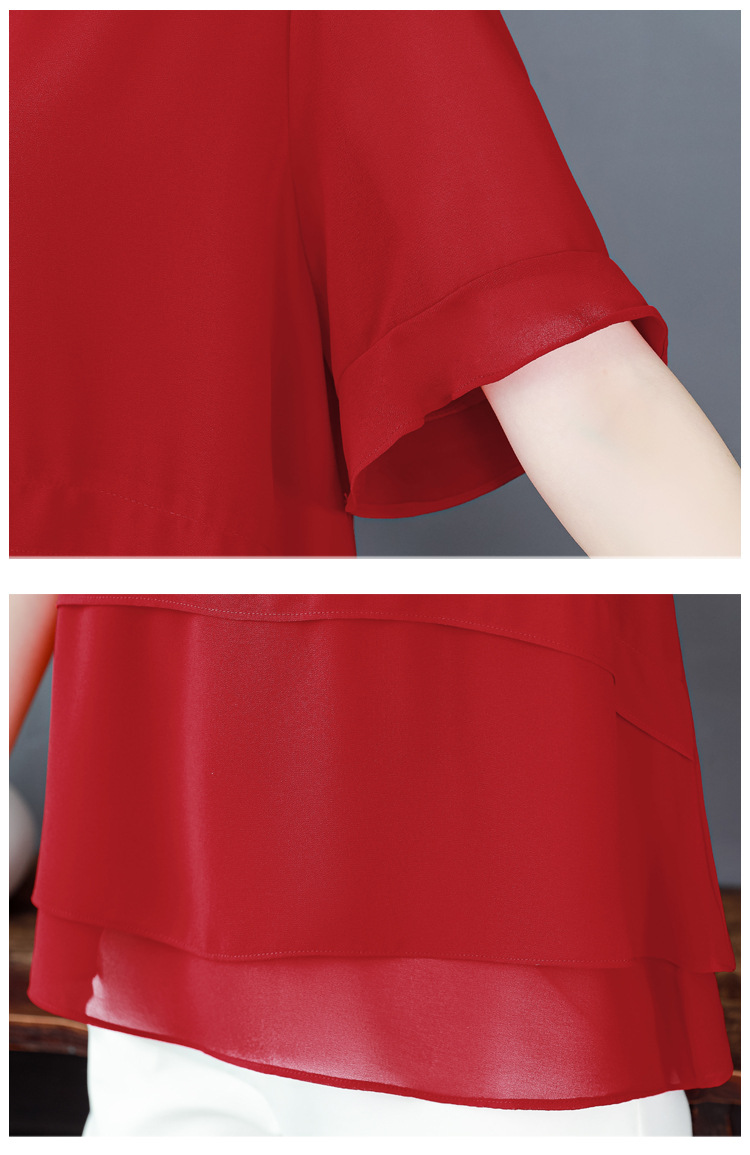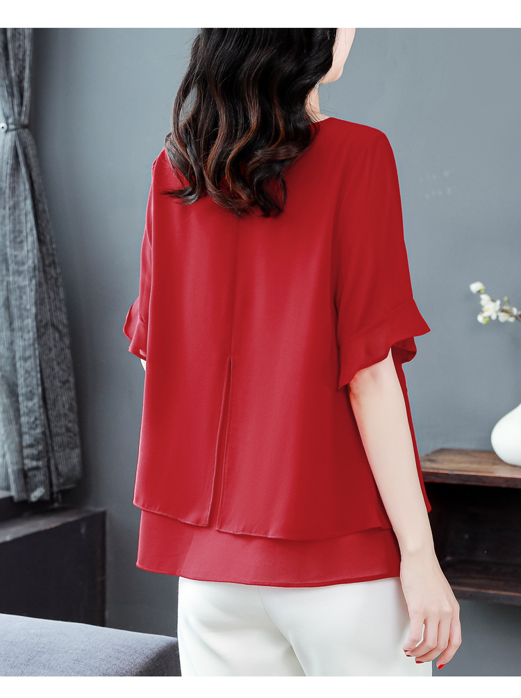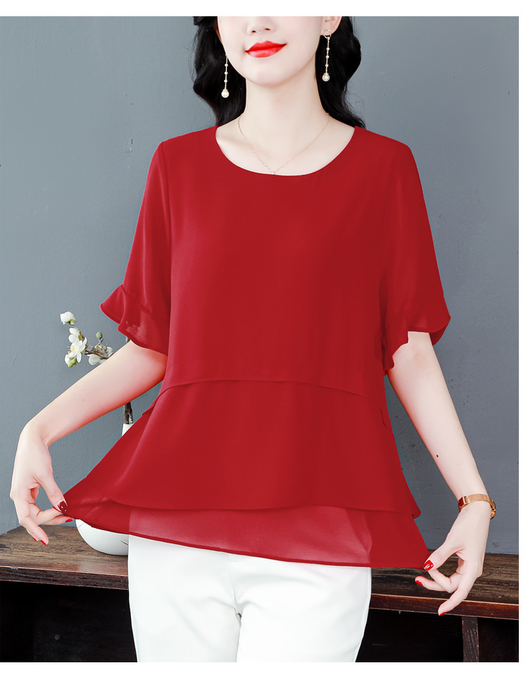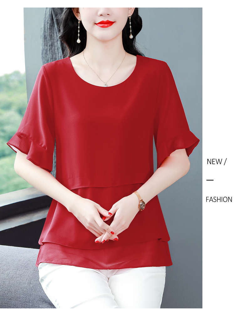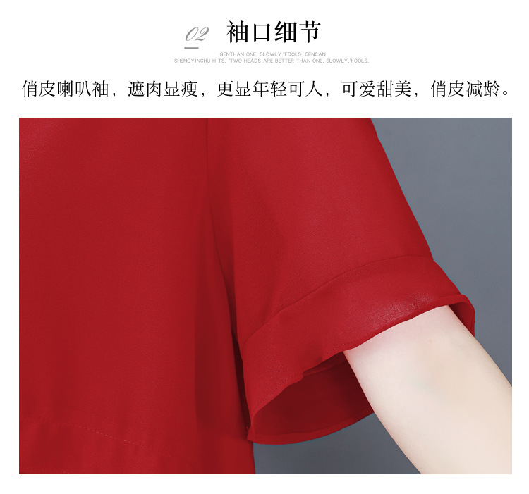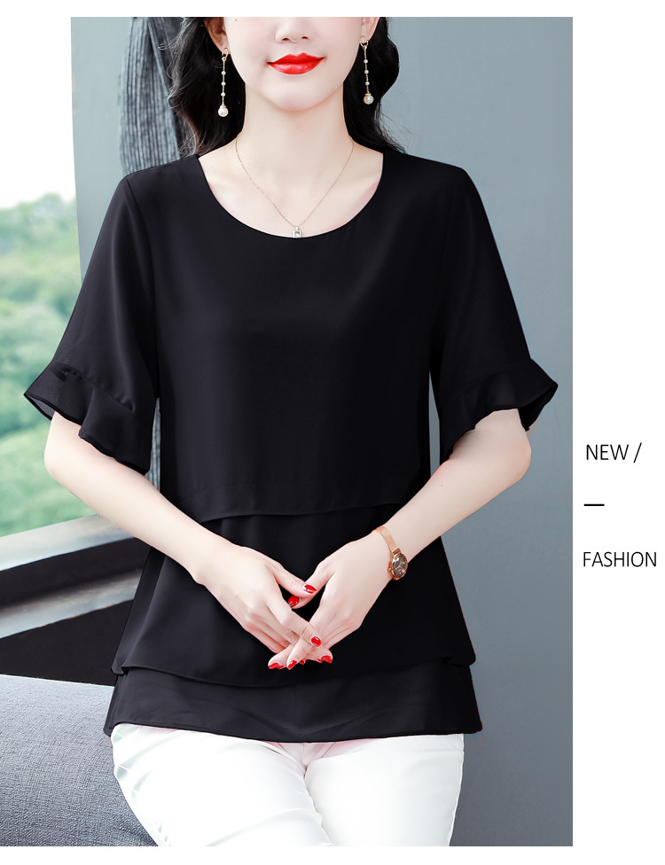 통통녀 반팔 쉬폰 셔츠 여성 디자인 센스 리어 스플릿 탑 여름 중년 어머니의 느슨한 배 덮개 셔츠