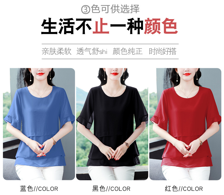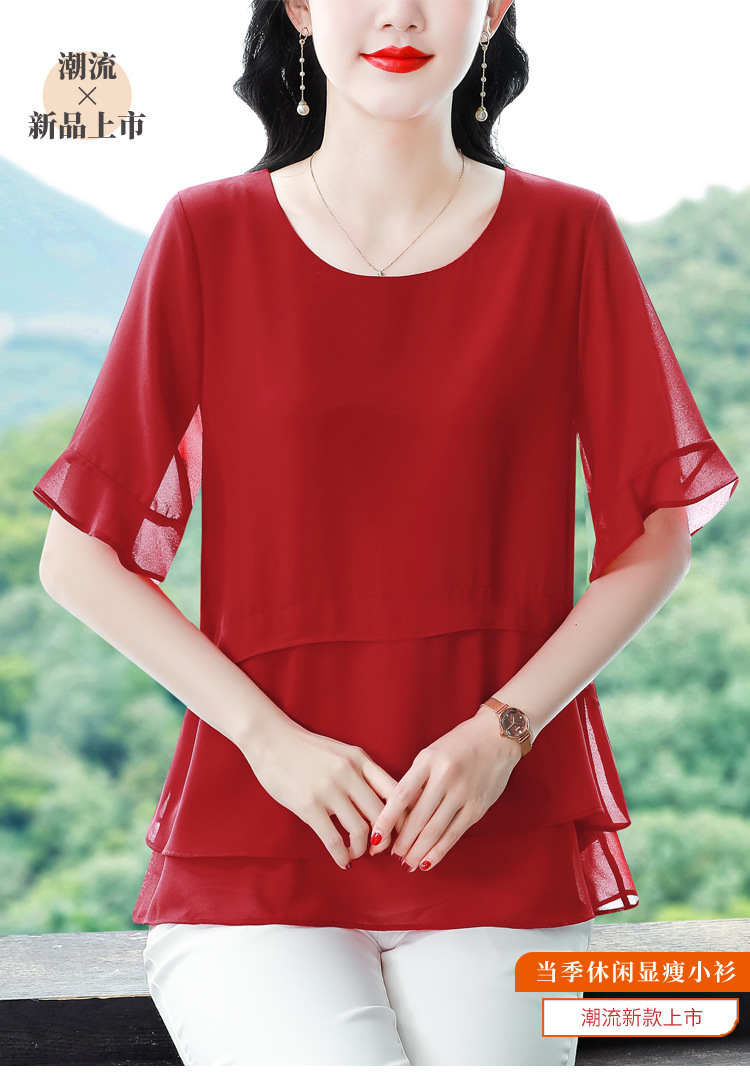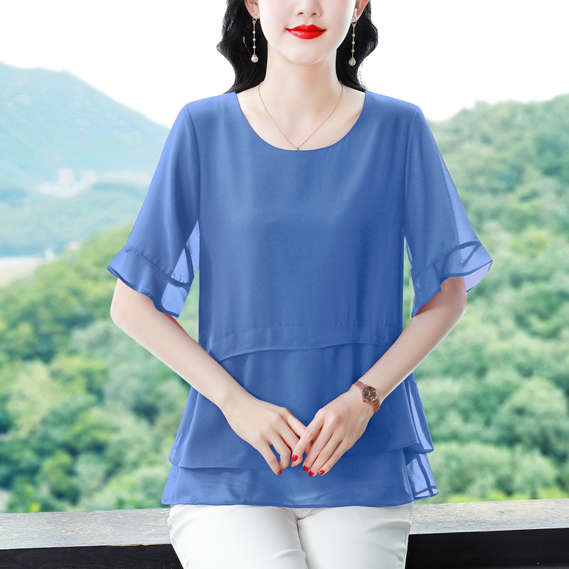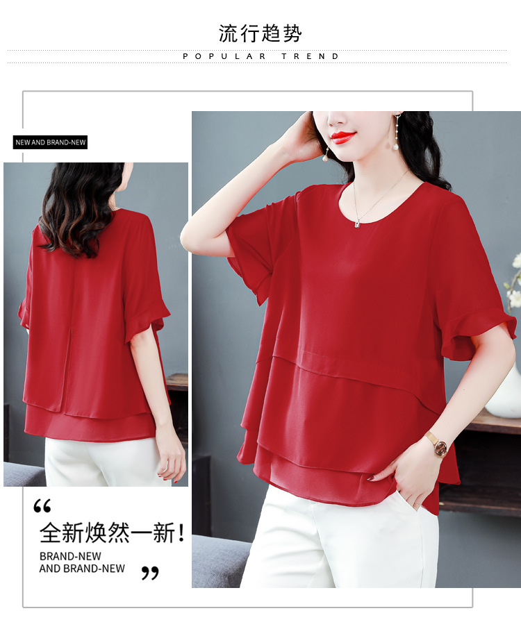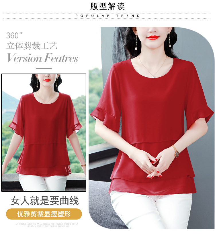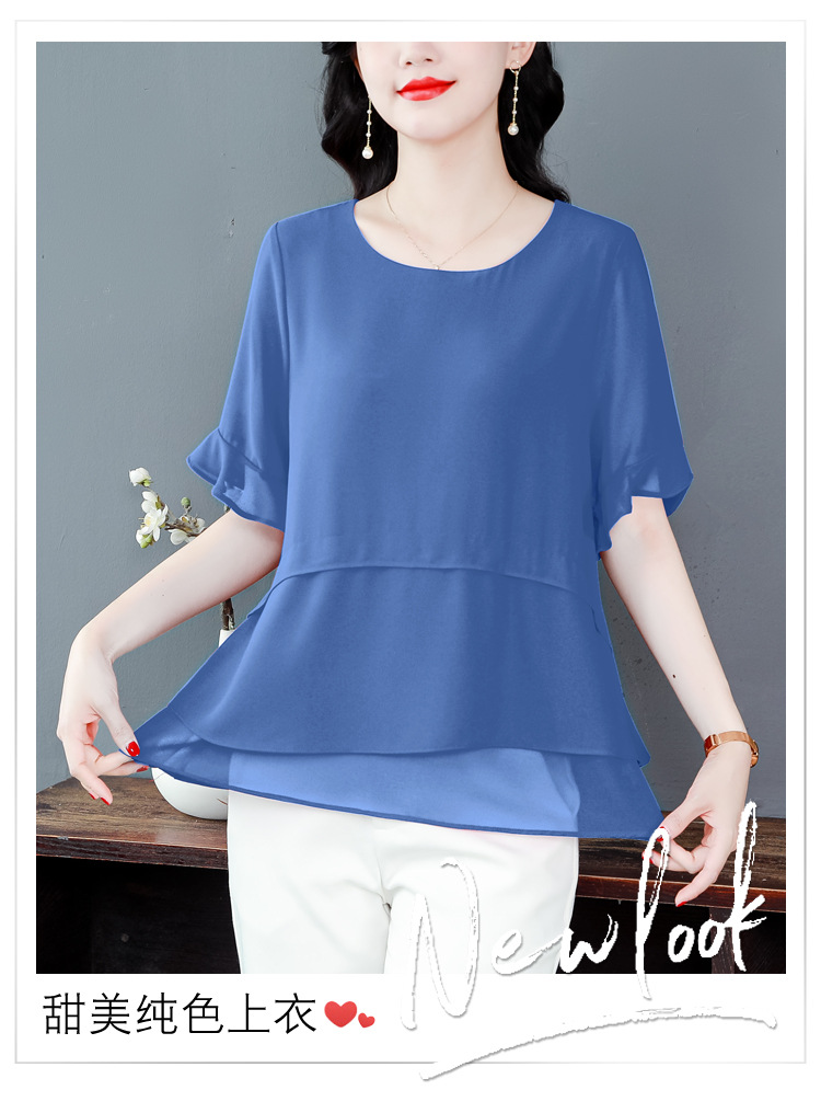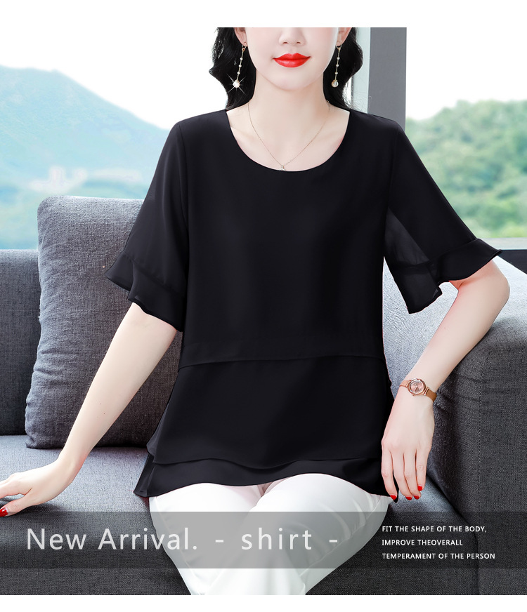 통통녀 반팔 쉬폰 셔츠 여성 디자인 센스 리어 스플릿 탑 여름 중년 어머니의 느슨한 배 덮개 셔츠스토어 가기