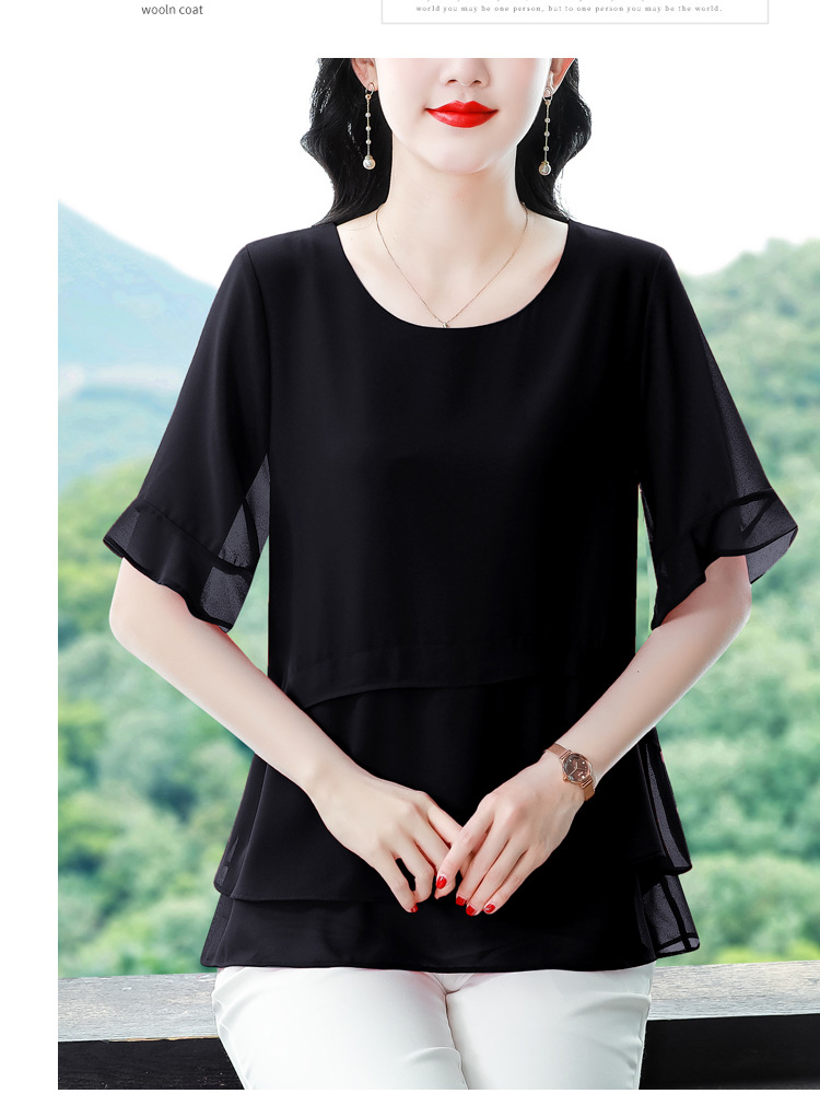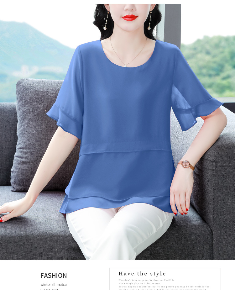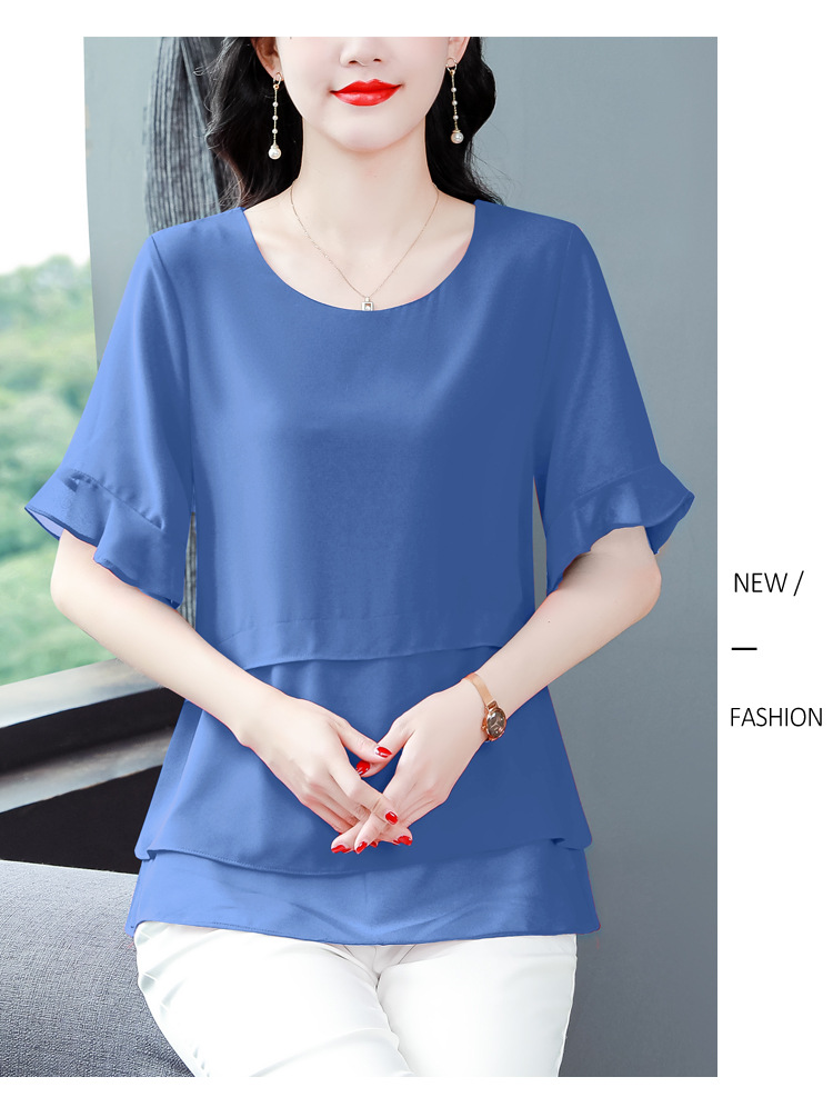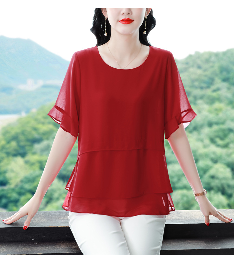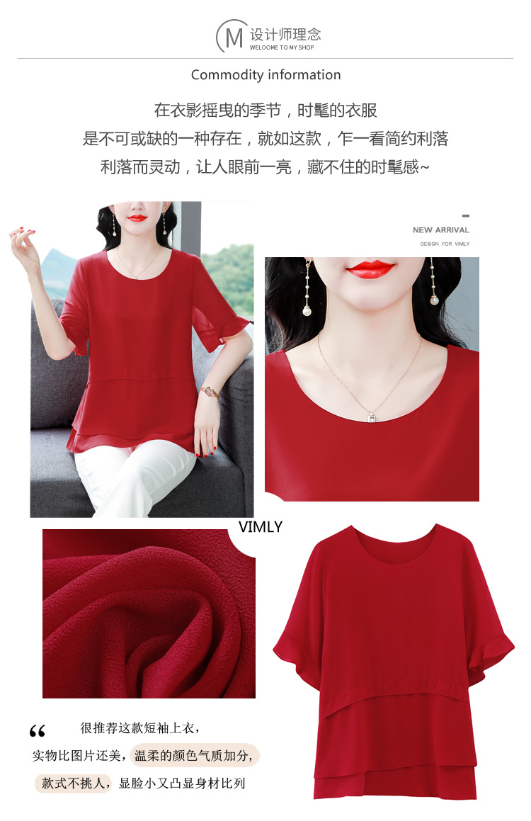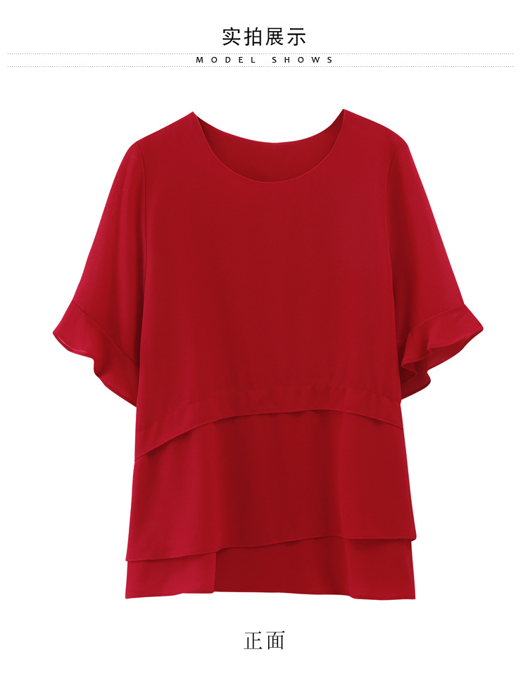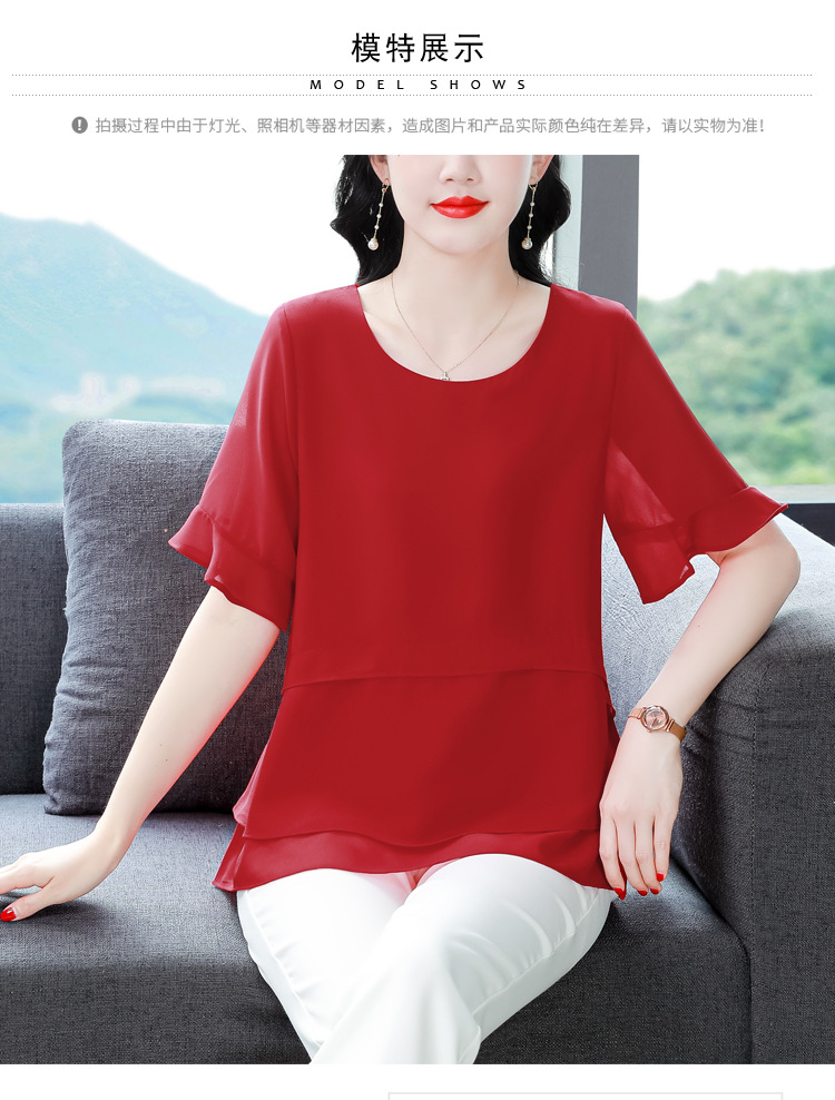 통통녀 반팔 쉬폰 셔츠 여성 디자인 센스 리어 스플릿 탑 여름 중년 어머니의 느슨한 배 덮개 셔츠스토어 가기