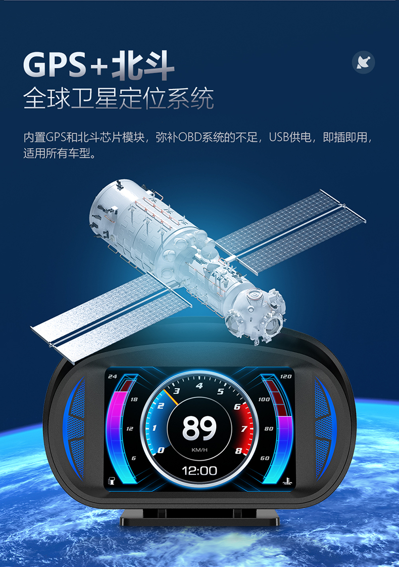 자동차 HUD 헤드 업 디스플레이 자동차 범용 OBD LCD 미터 경사 미터 차량 속도 다기능 고화질 헤드 업스토어 가기