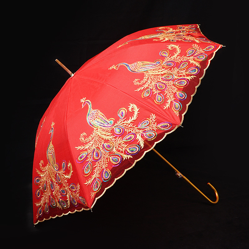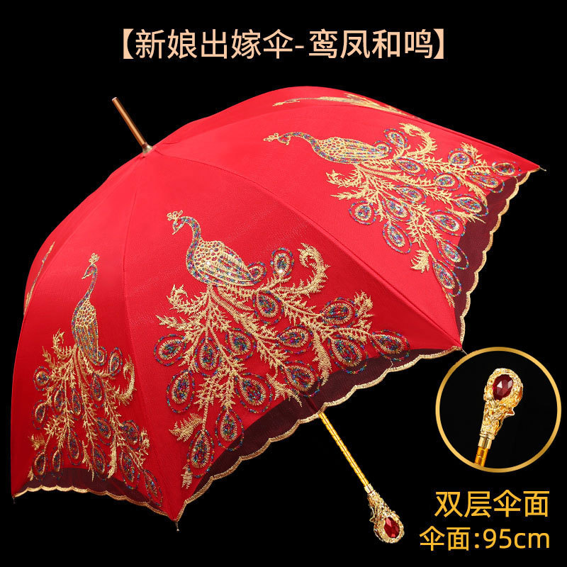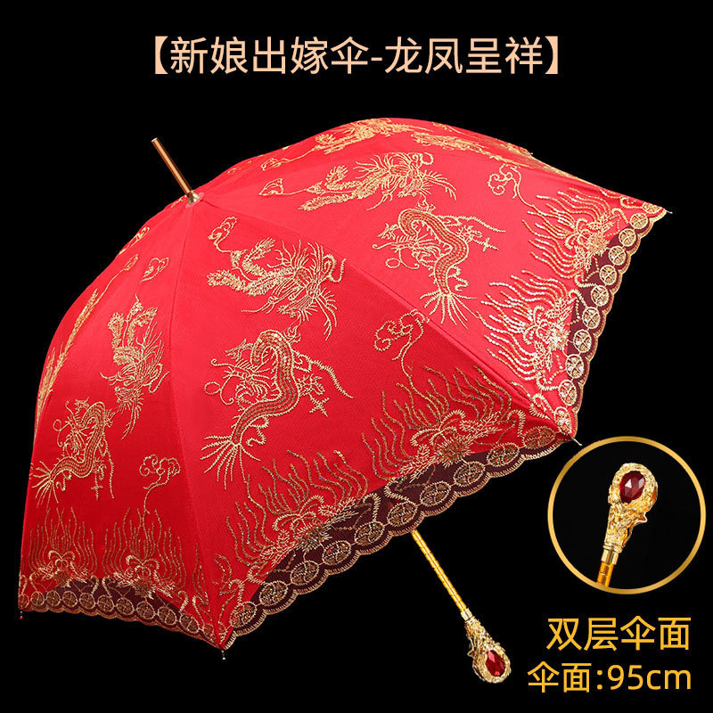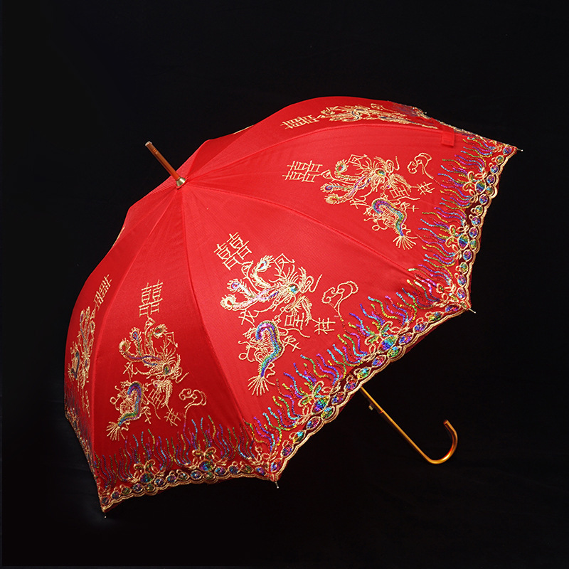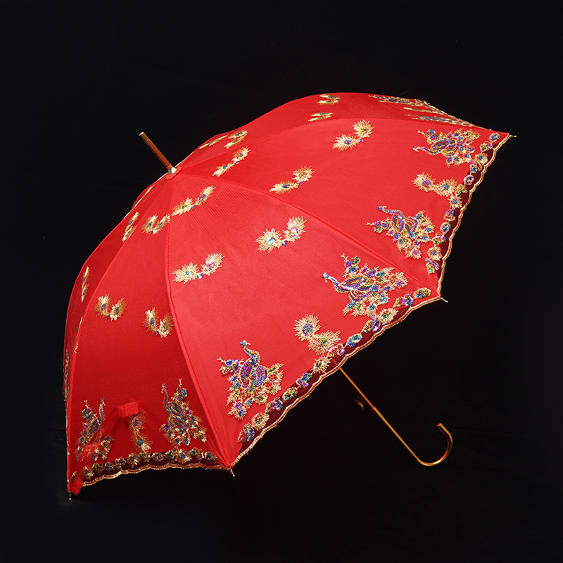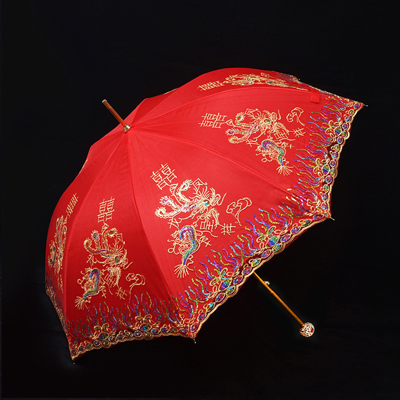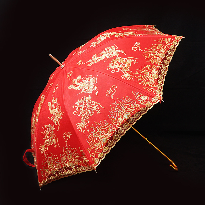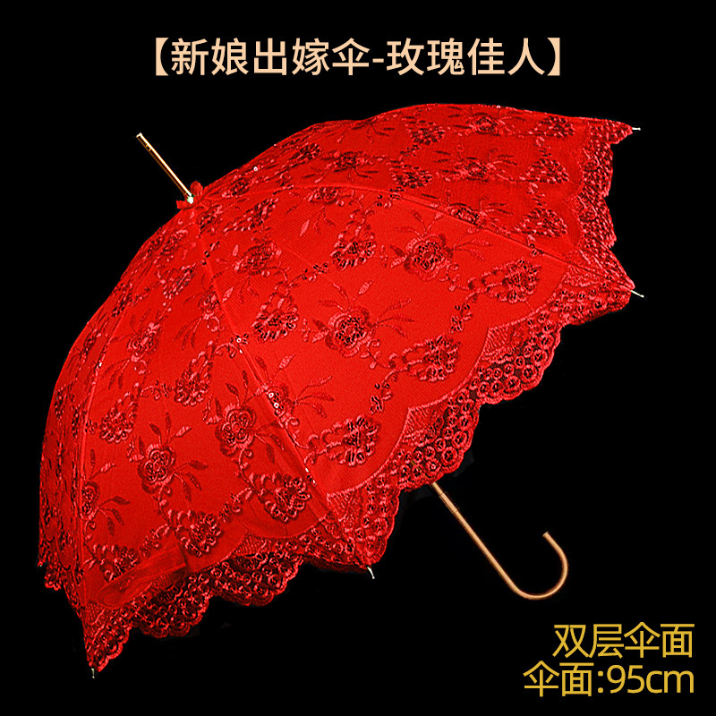 레드 우산 웨딩 신부 우산 웨딩 우산 레이스 중국 스타일 웨딩 롱 핸들 우산 빈티지 웨딩 우산