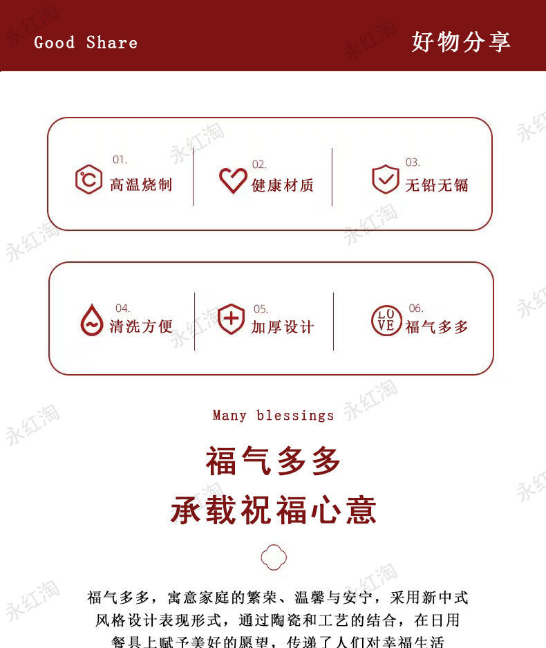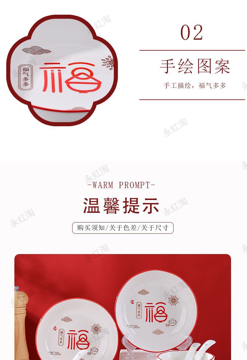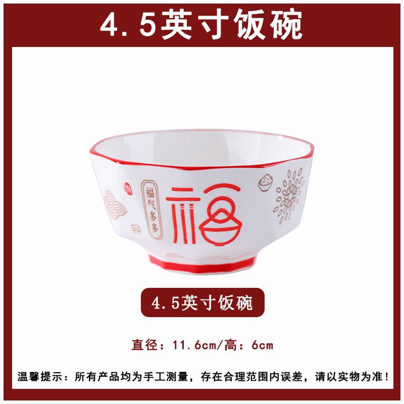 Fuqi Duoduo 가정용 2024 새로운 중국 스타일 세라믹 밥 그릇 두꺼운 안티 스케일 보울과 플레이트 조합 집들이 선물을주는 식기