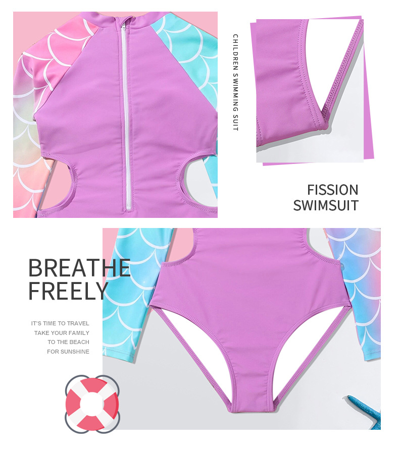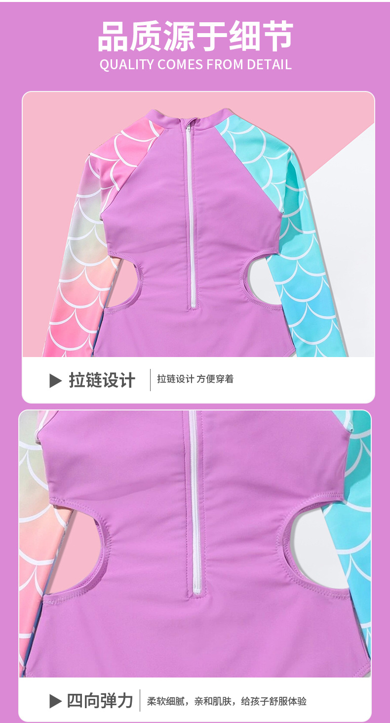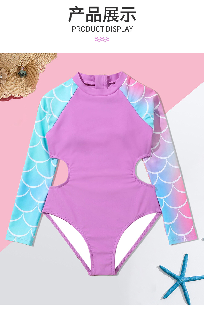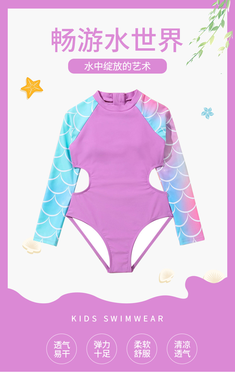 2024 새로운 어린이 수영복 원피스 인어 소녀 큰 어린이 국경 긴 소매 대외 무역 수영복 수영복스토어 가기