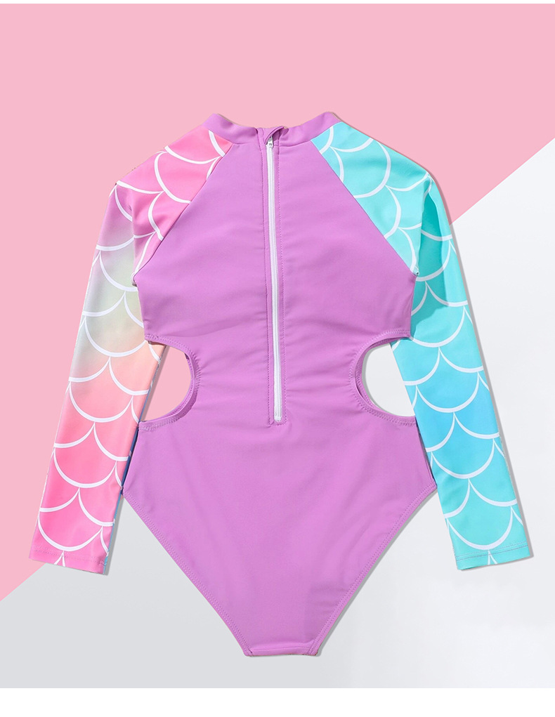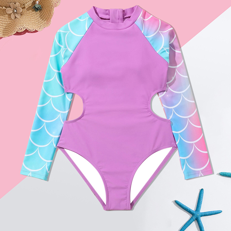 2024 새로운 어린이 수영복 원피스 인어 소녀 큰 어린이 국경 긴 소매 대외 무역 수영복 수영복