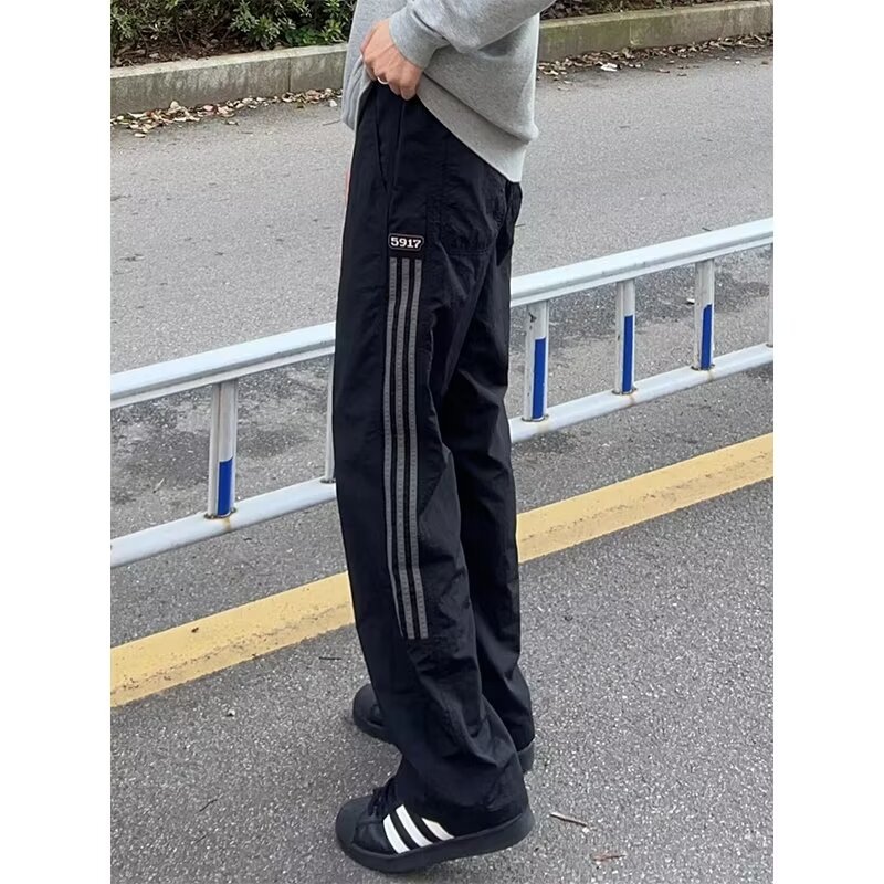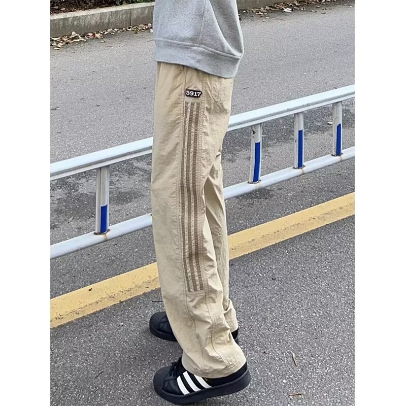 아메리칸 스타일 레트로 2024 여름 통기성 와이드 레그 캐주얼 바지 사이드 스트라이프 퀵 건조 작업복 캐주얼 바지스토어 가기