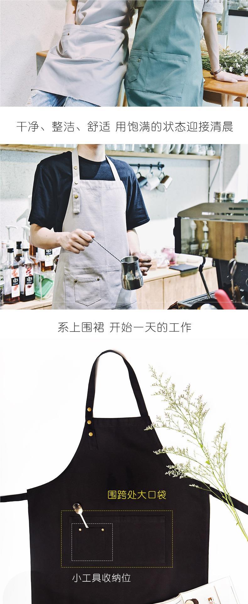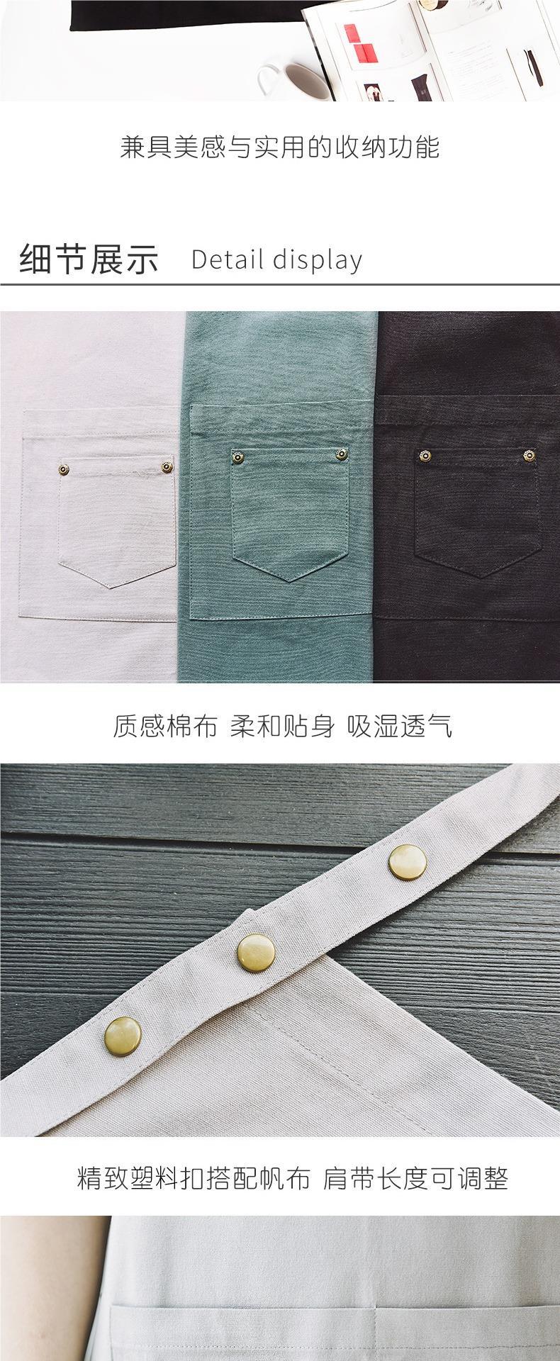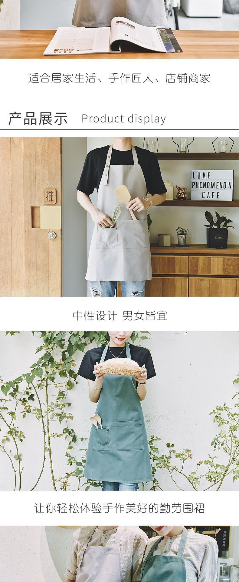 앞치마 방수 및 오일 증거 가정용 주방 작업복 남성과 여성 여름 얇은 순수 코튼 포켓 디자인 커버 커피 숍