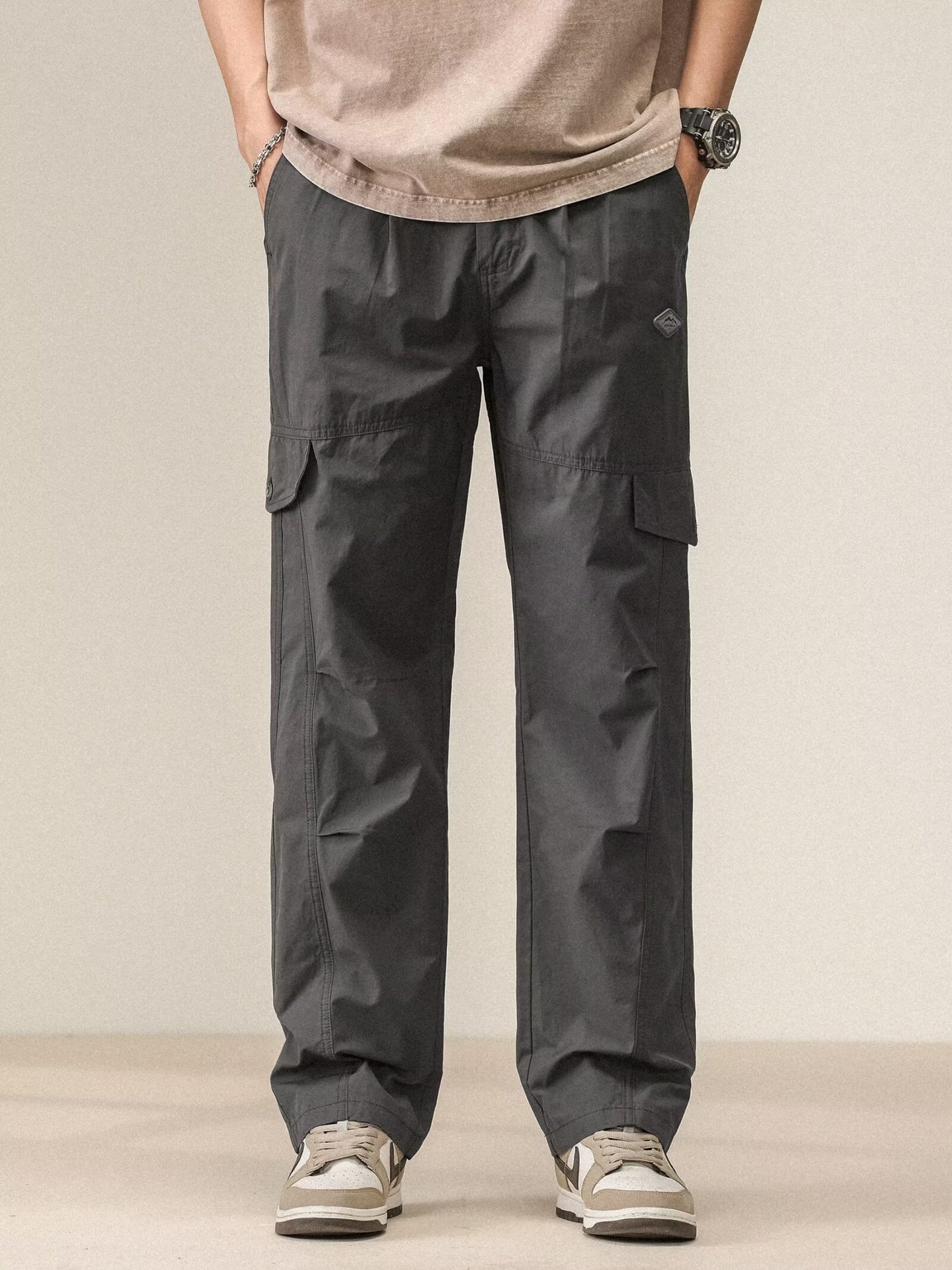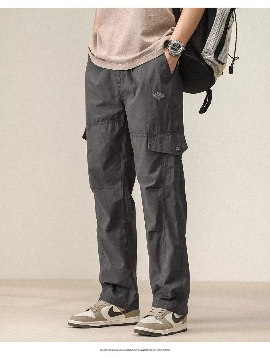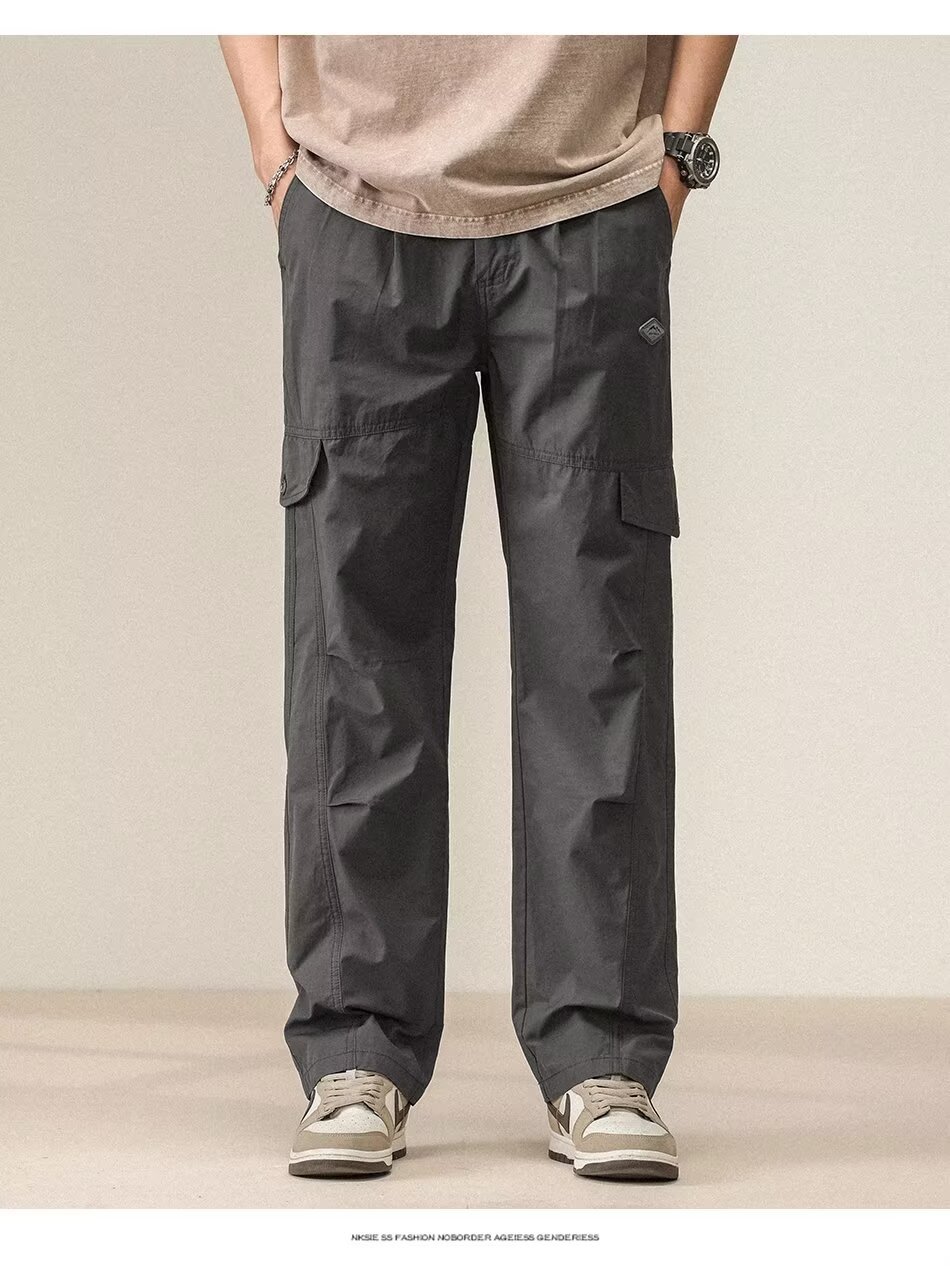 새로운 아메리칸 스타일 레트로 트렌디 브랜드 느슨한 스트레이트 캐주얼 바지 남자 오버롤 주름 낙하산 바지 스포츠 올매치스토어 가기